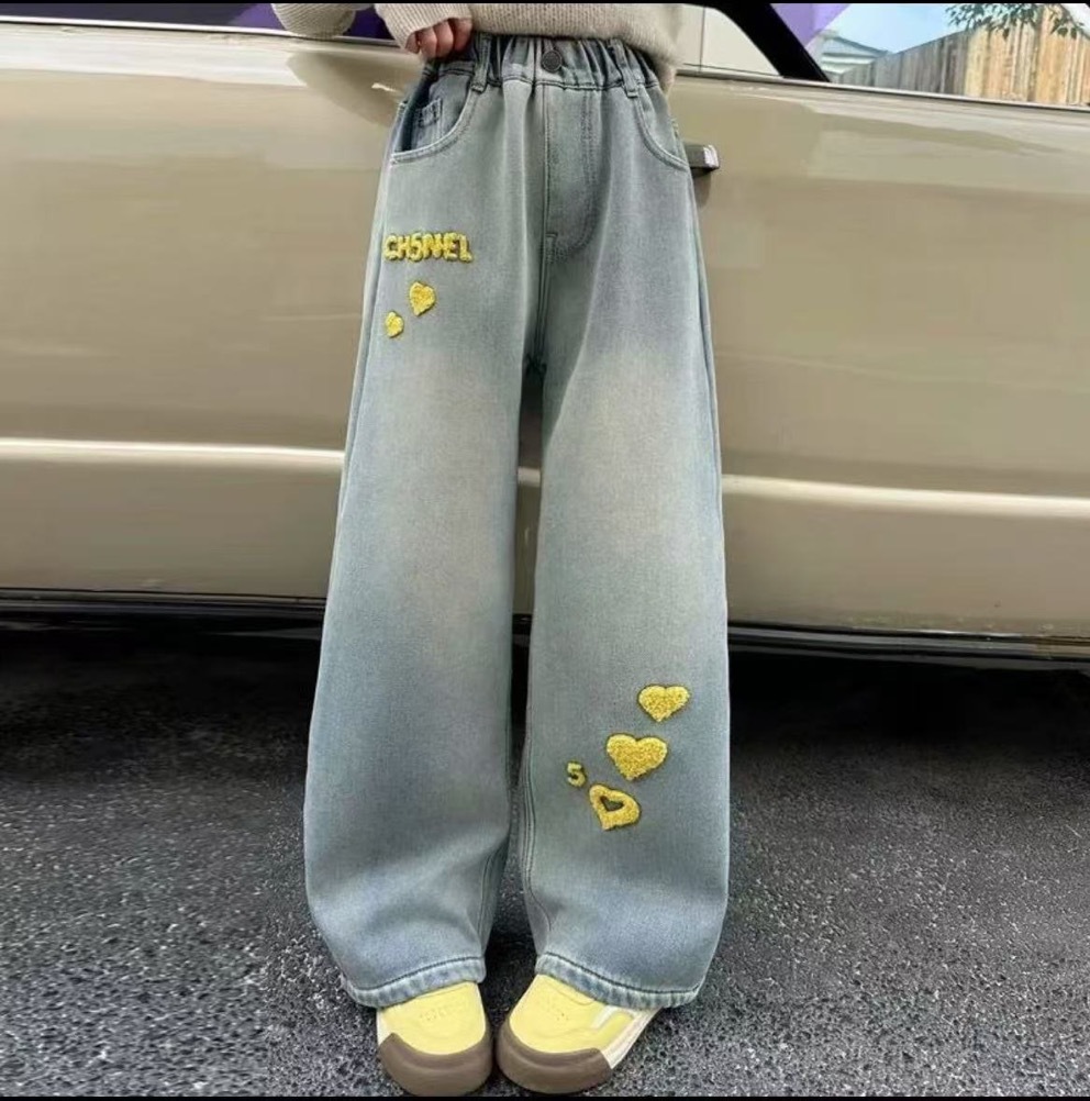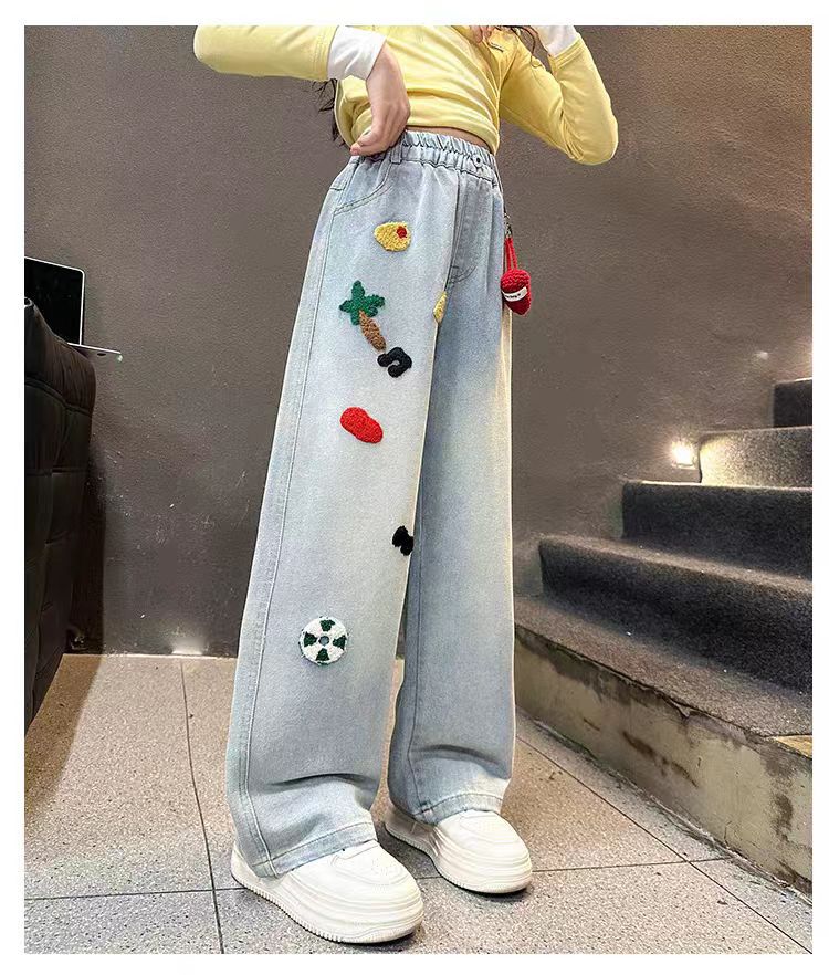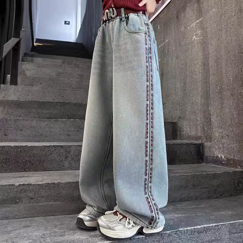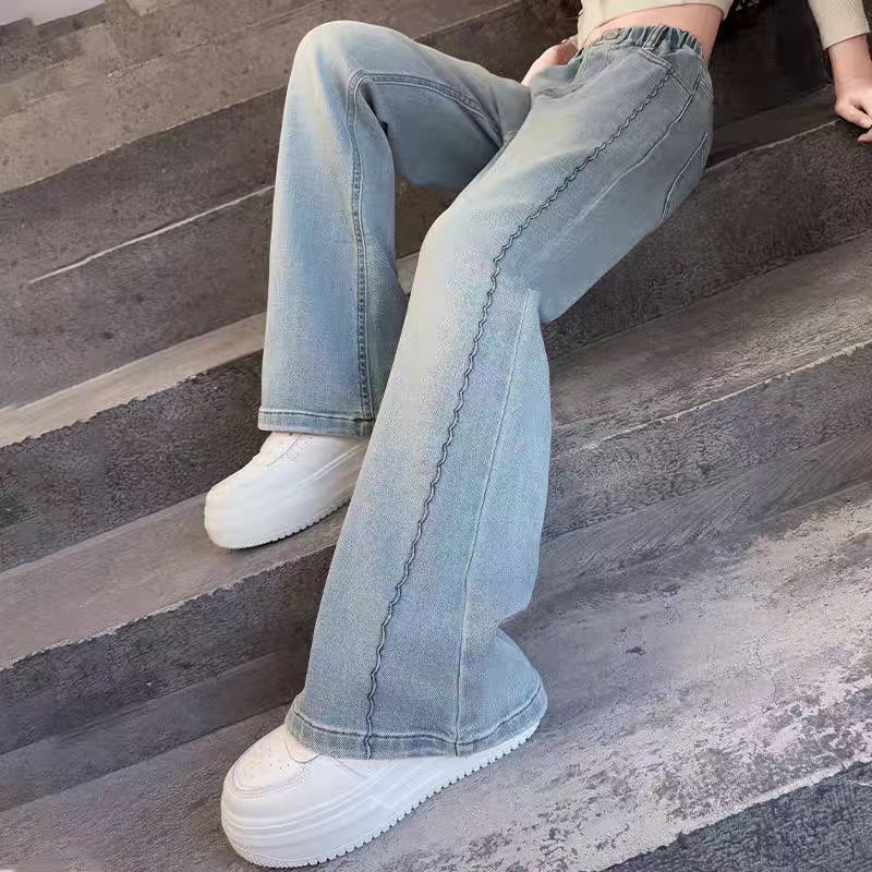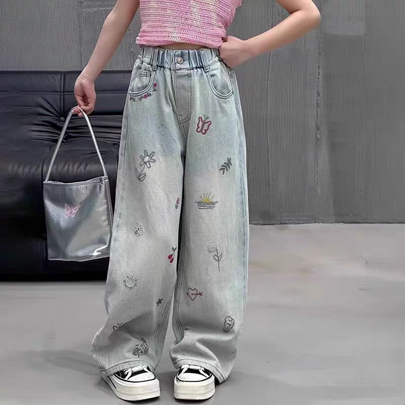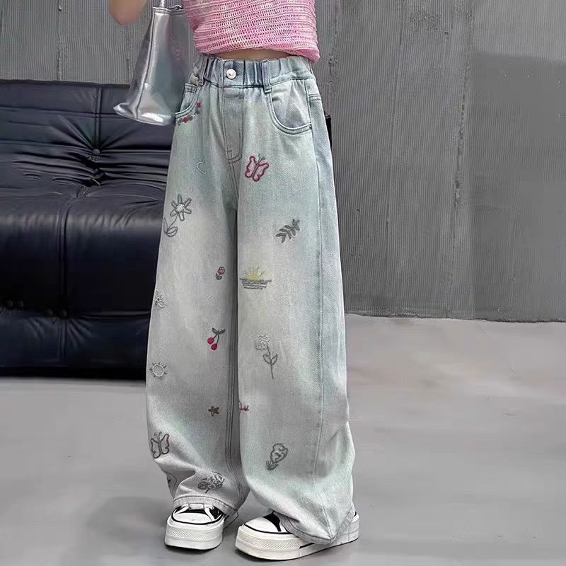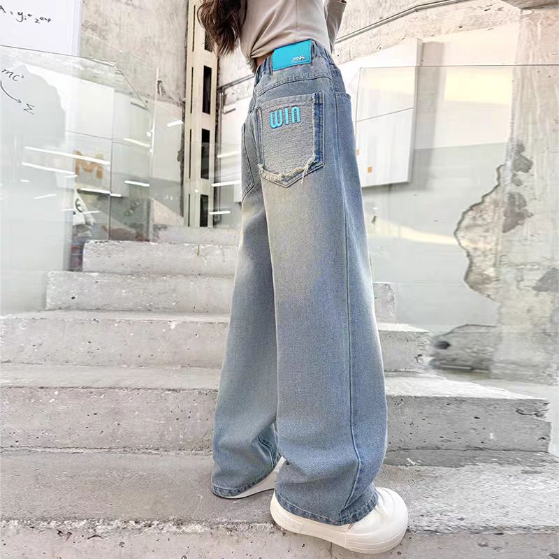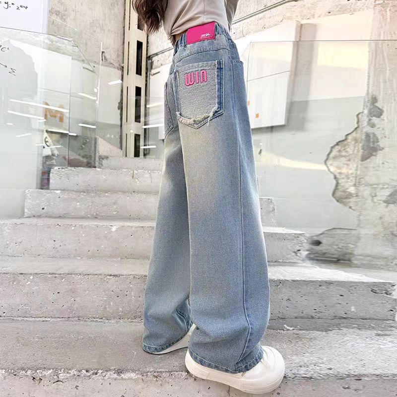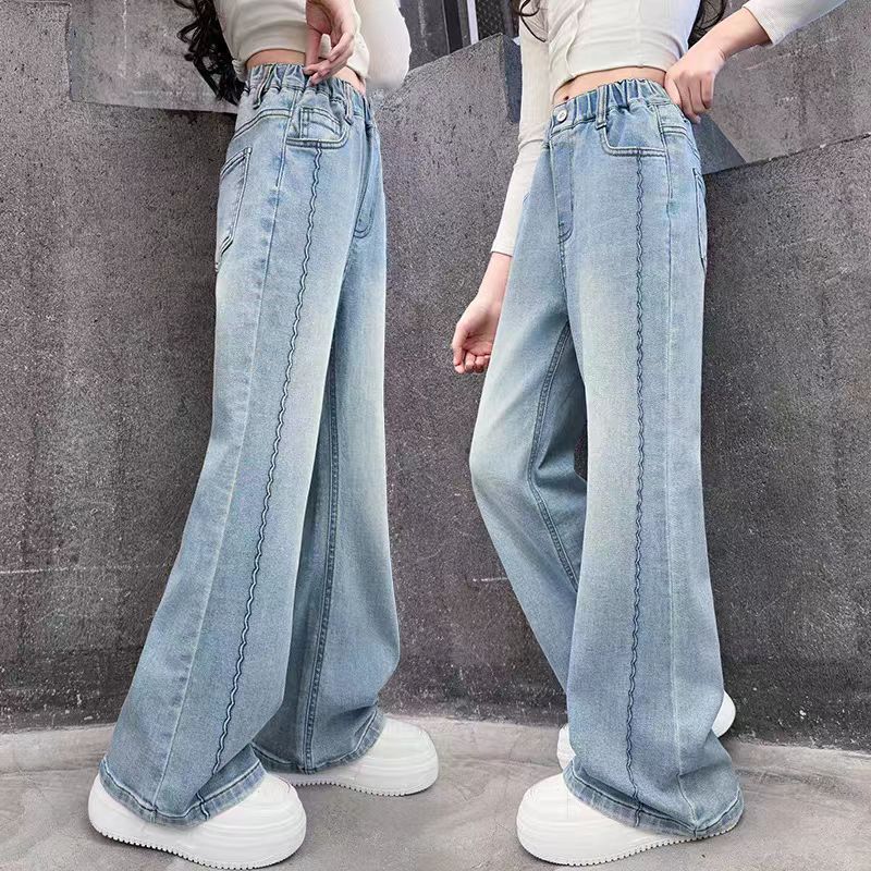 소녀 데님 넓은 다리 바지 2025 새로운 소녀 봄 서양식 바지 대형 어린이 봄과 가을 유행 직선 바지스토어 가기