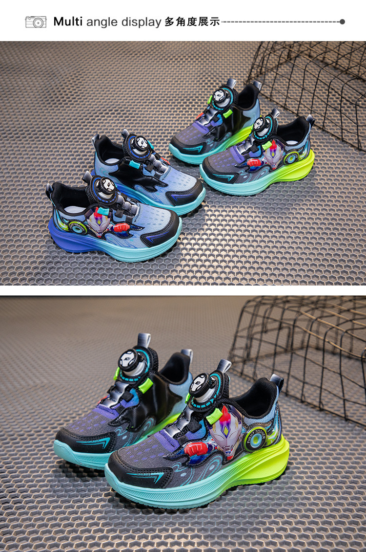 울트라 맨 어린이 신발 큰 어린이 운동화 2025 새로운 회전 버클 통기성 만화 캐주얼 신발 어린이 운동화
