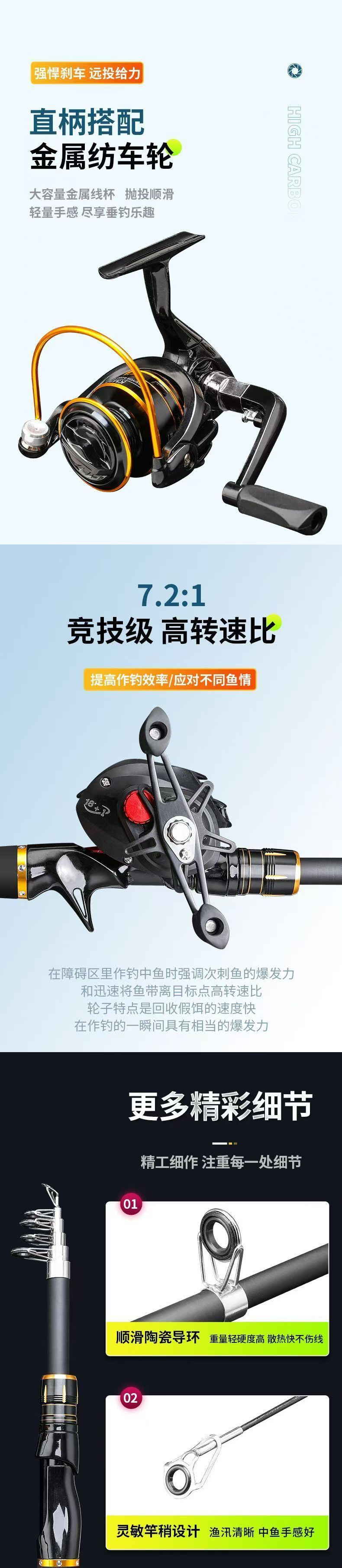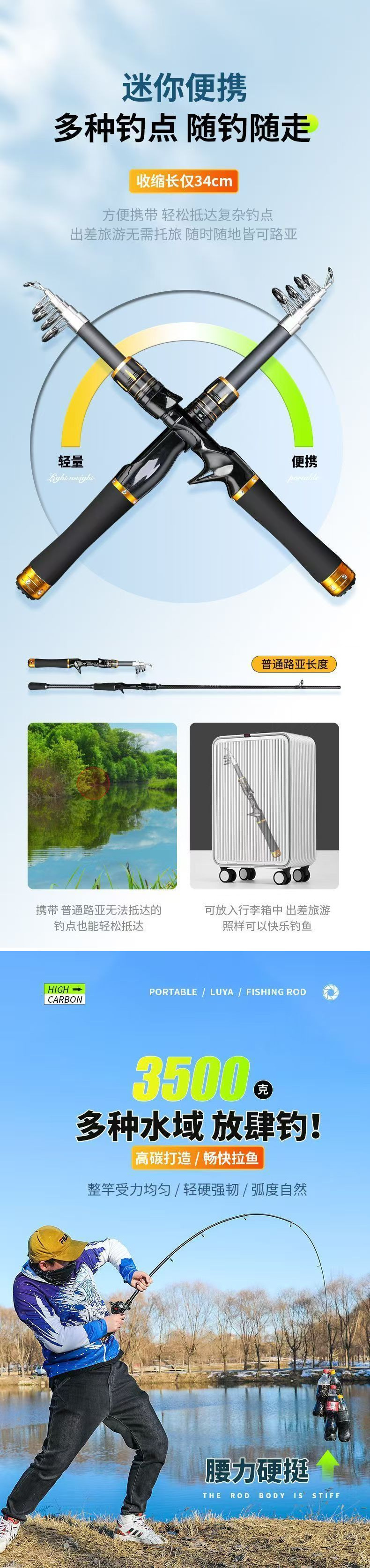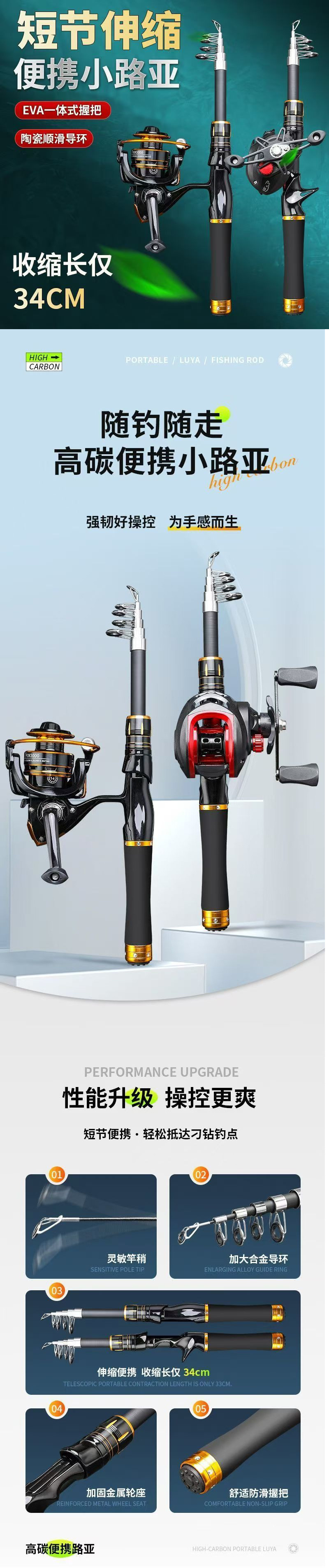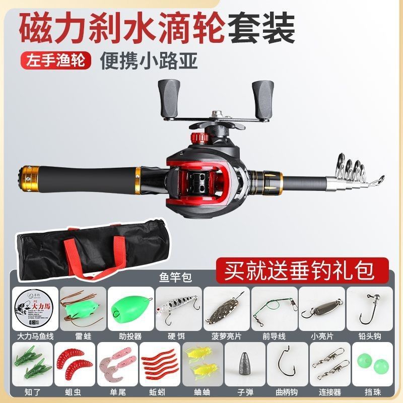 텔레스코픽 루야로드 풀 세트 휴대용 미니 루야 세트 짧은 섹션 원격 캐스트 작은 바다 막대 바다 막대 던지기 막대 회전 휠로드스토어 가기
