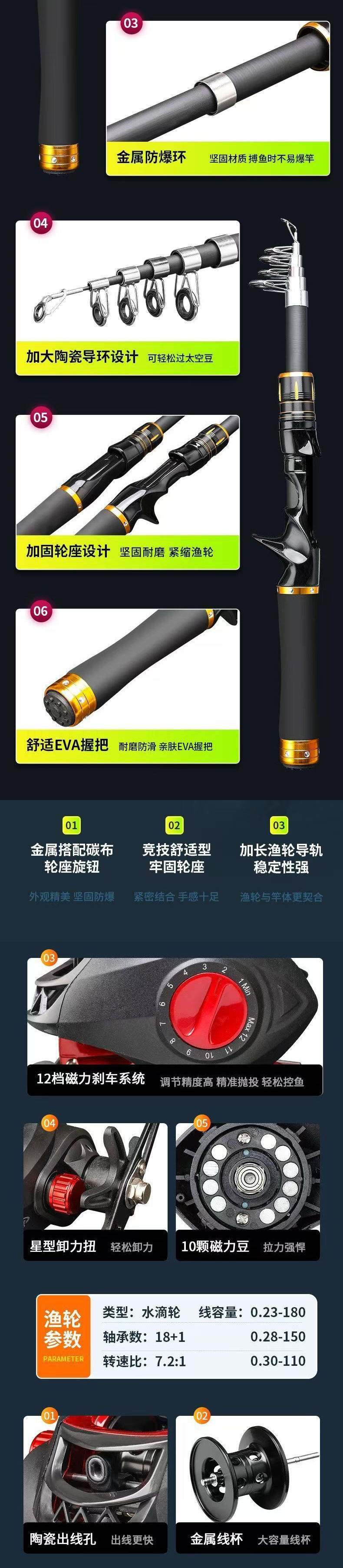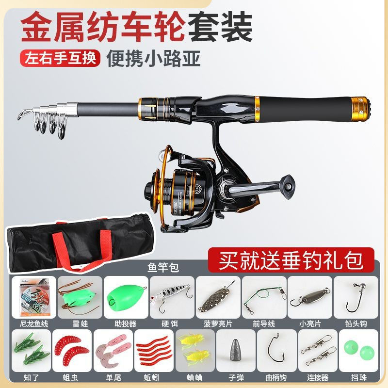텔레스코픽 루야로드 풀 세트 휴대용 미니 루야 세트 짧은 섹션 원격 캐스트 작은 바다 막대 바다 막대 던지기 막대 회전 휠로드