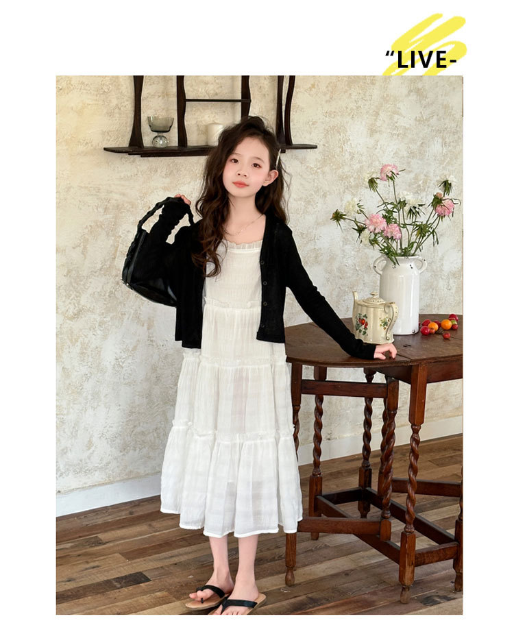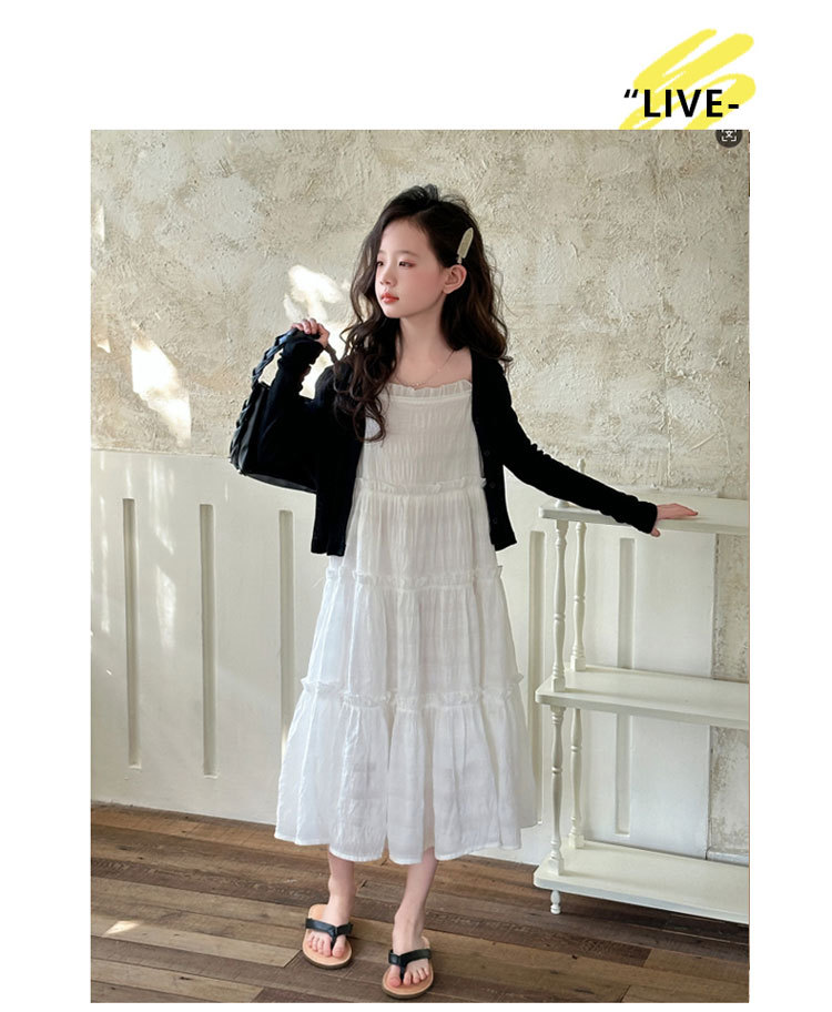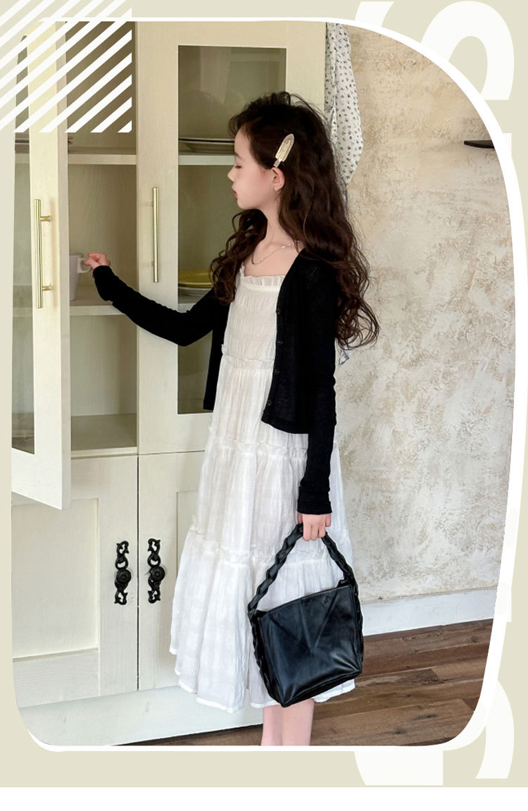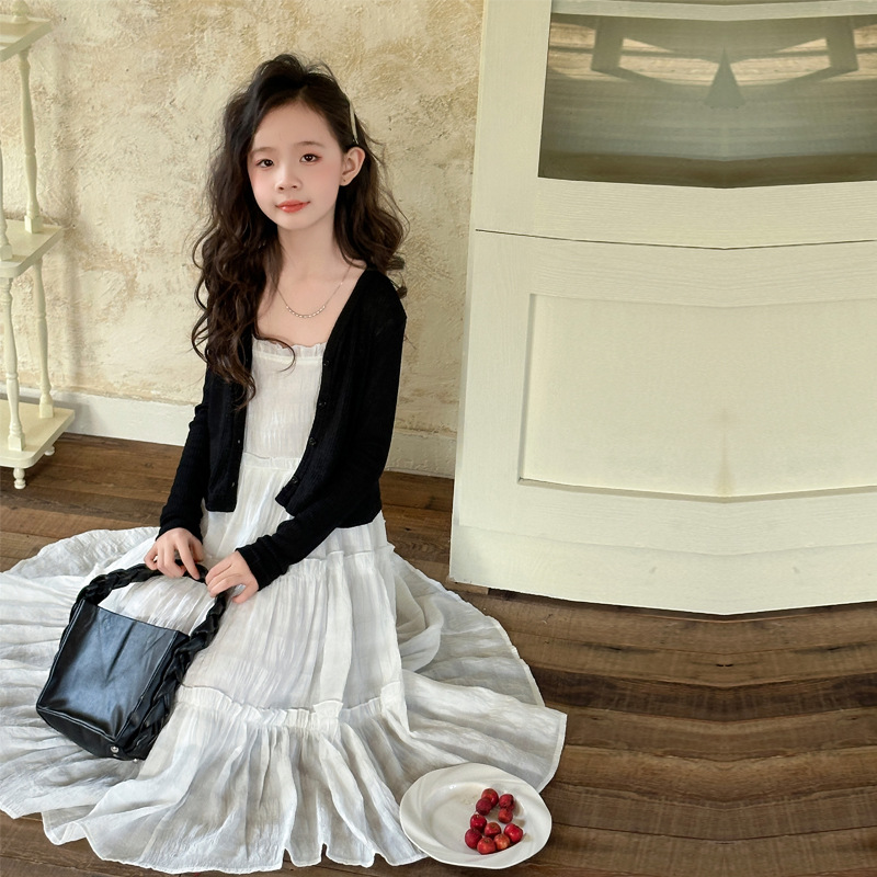 소녀 원피스 봄 2025 새로운 소녀 서양식 선 스크린 카디건과 서스펜더 스커트 어린이 봄과 여름 투피스 세트