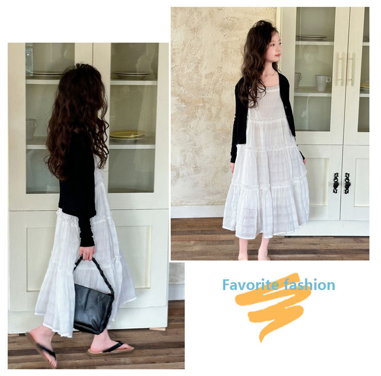 소녀 원피스 봄 2025 새로운 소녀 서양식 선 스크린 카디건과 서스펜더 스커트 어린이 봄과 여름 투피스 세트스토어 가기