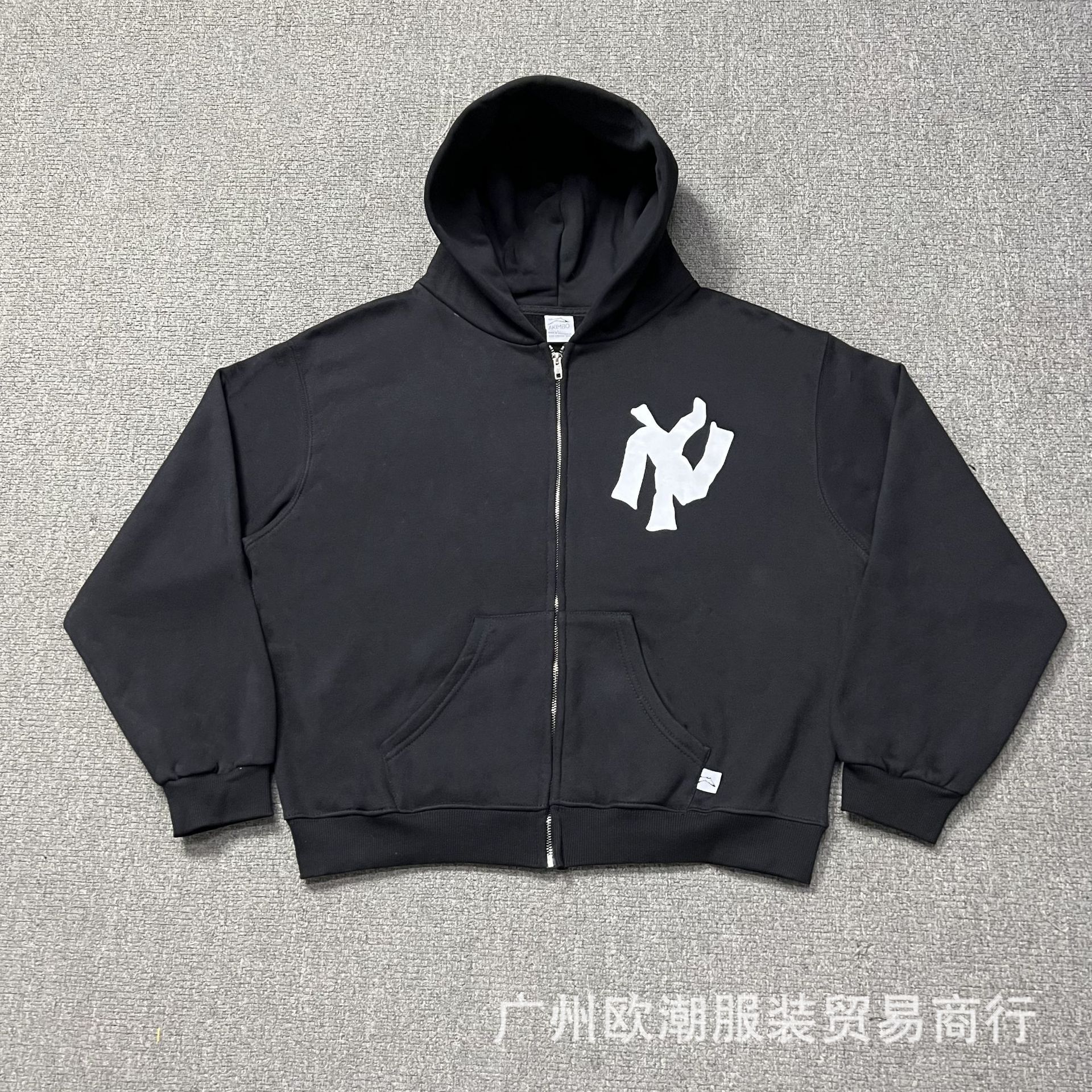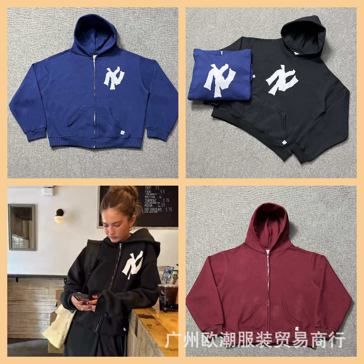 AKIMBO 유럽과 미국 대외 무역 국경 2024 가을과 겨울 유럽과 미국 국경 간 간단한 편지 인쇄 기모 스웨터 재킷 조수스토어 가기