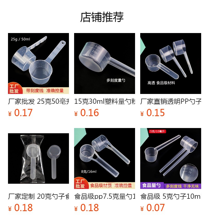 도매 직접 판매 투명 PP 스푼 35g 70 ml 단백질 분말 스케일 스푼 액체 플라스틱 측정 숟가락 대량 식품 등급