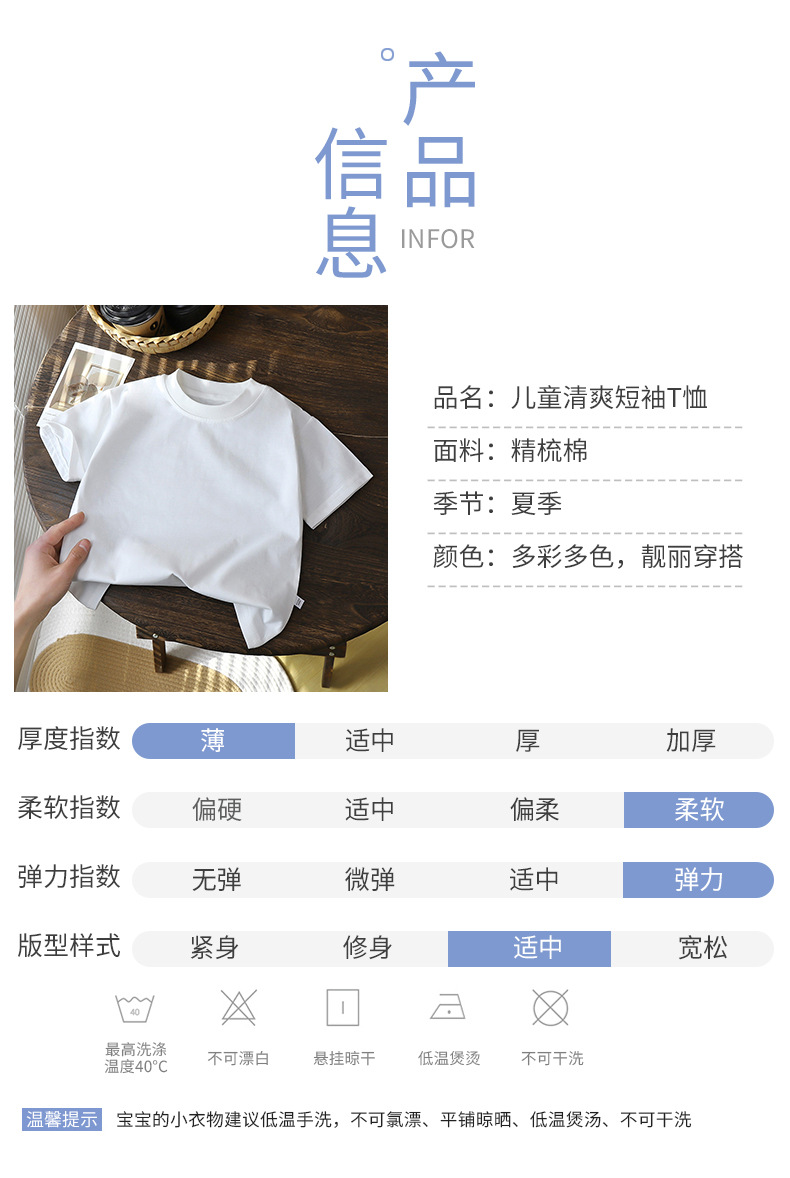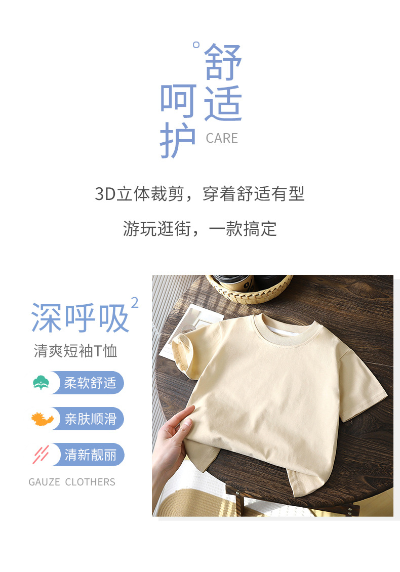여름 어린이 단색 티셔츠 짧은 소매면 소년 새 여름 느슨한 반소매 아기 코트 머리카락 세대
