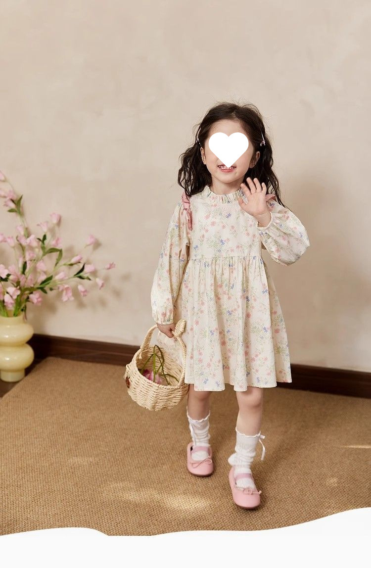 2025 새로운 소녀 유행 달콤한 공주 원피스 아기 소녀 봄과 가을 꽃 원피스 아기 인형 목걸이 패션스토어 가기