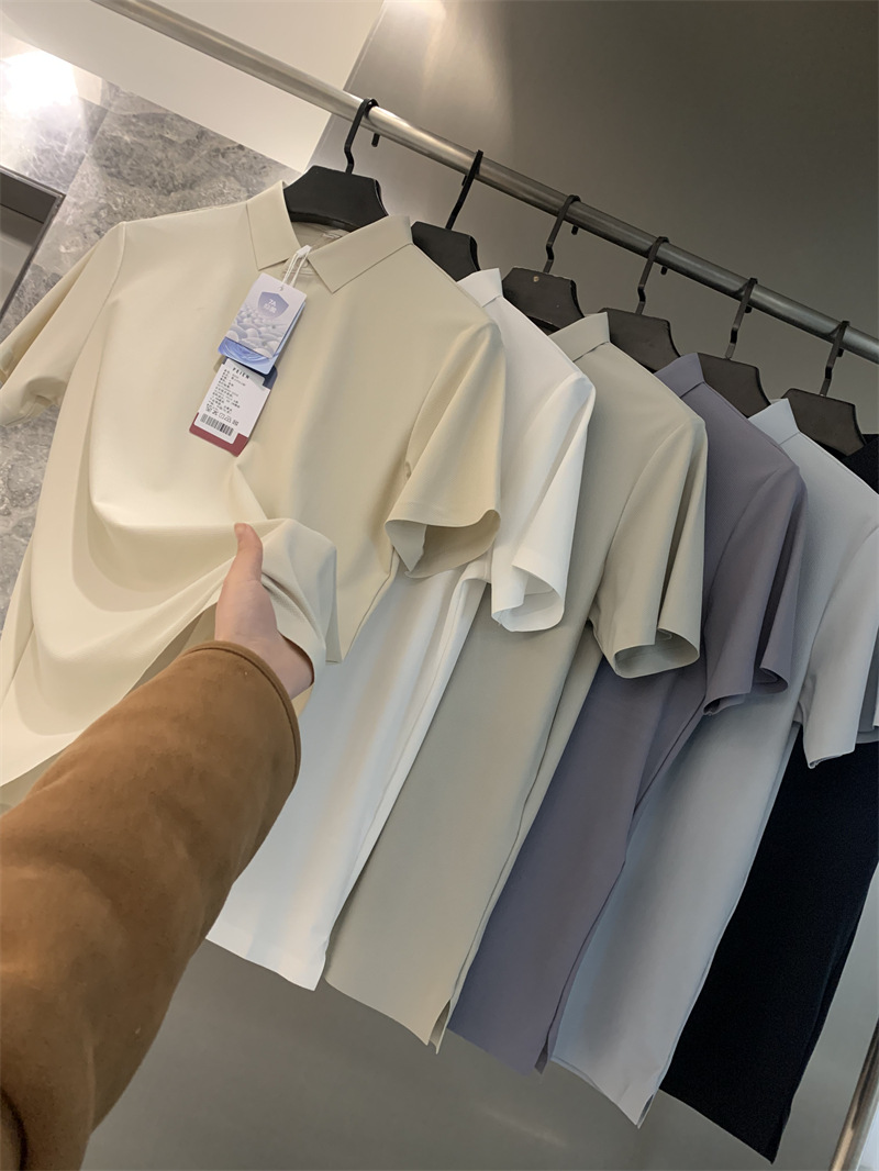얼음 피부 빠른 건조 원활한 압력 접착제! 여름 남자 라이트 비즈니스 캐주얼 올매치 반팔 폴로 셔츠스토어 가기