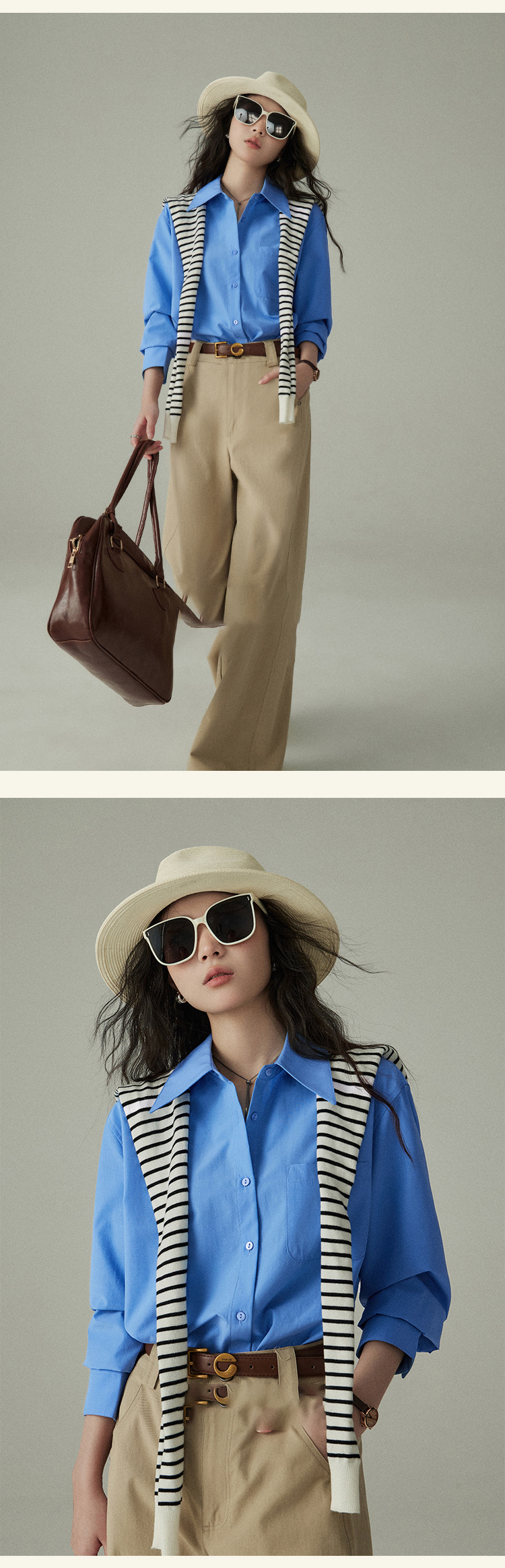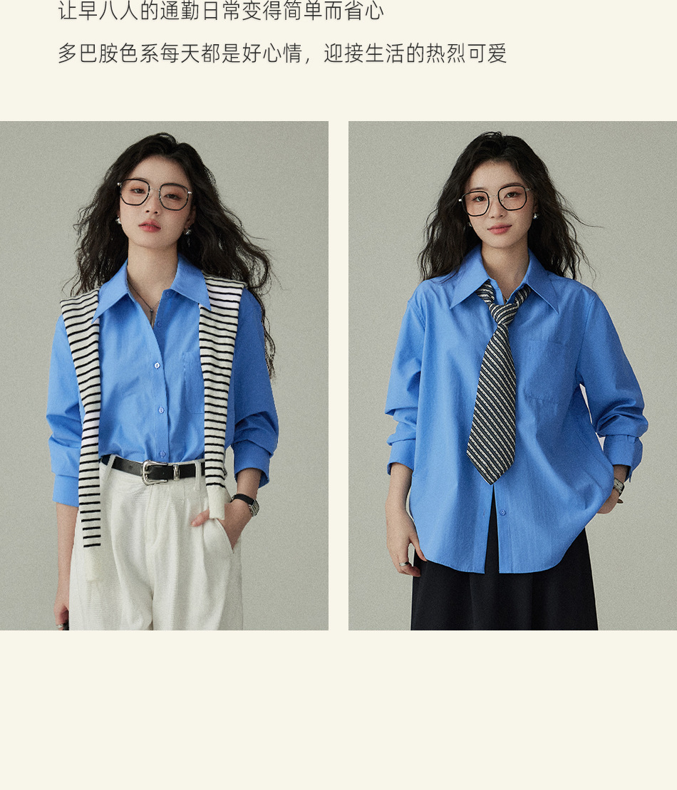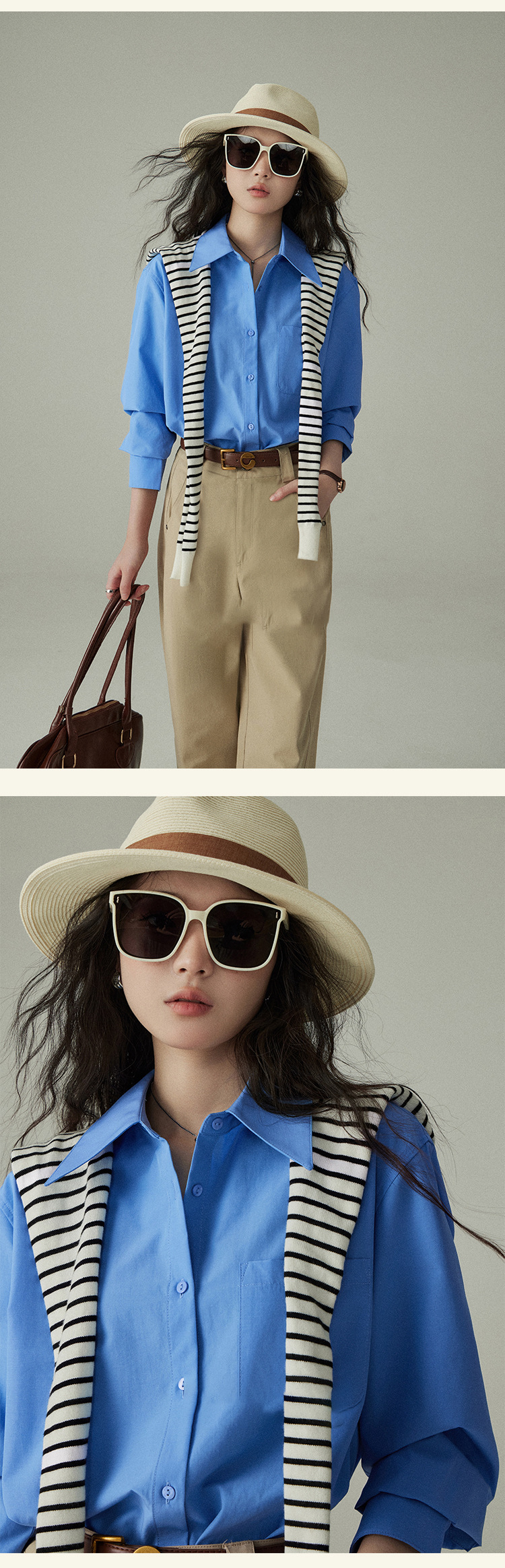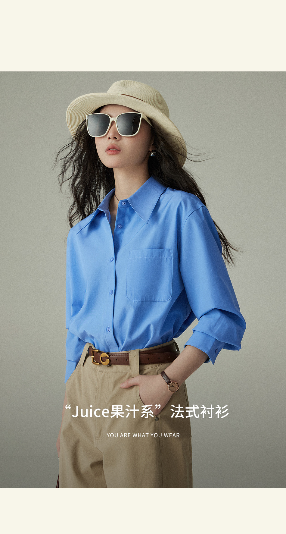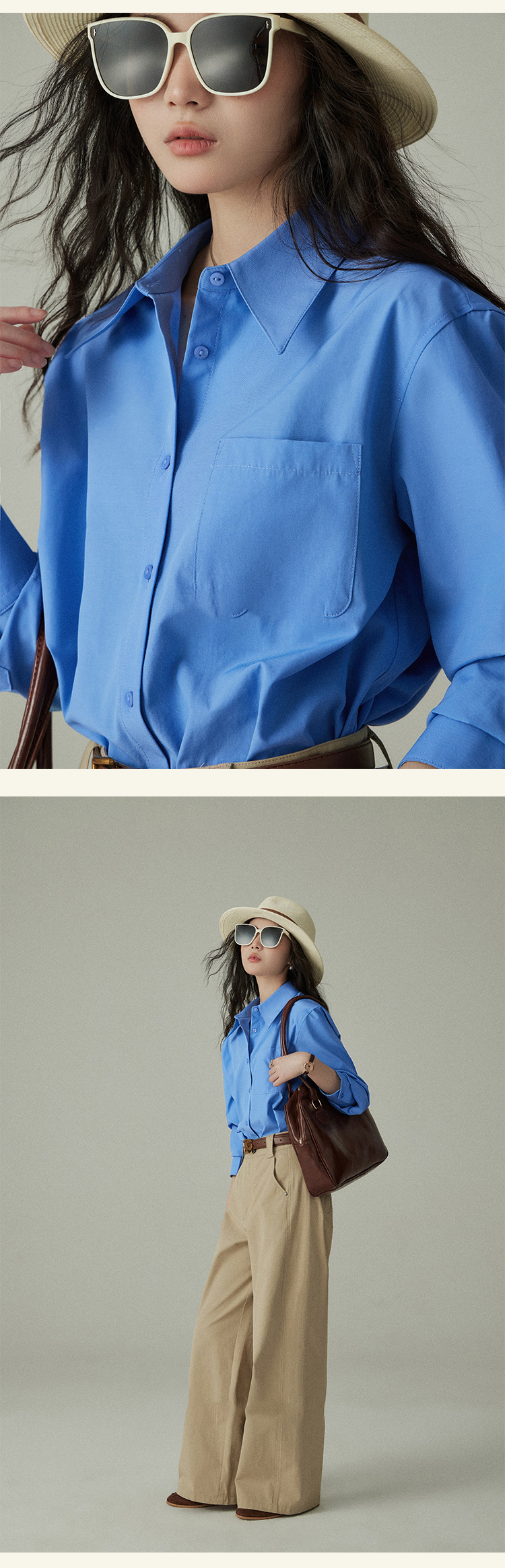 클라인 블루 주스 셔츠 여성의 봄 새로운 프랑스 스타일 공기 감각 전문 통근 느슨한 프로필 긴 소매 셔츠스토어 가기