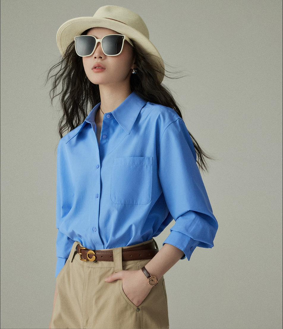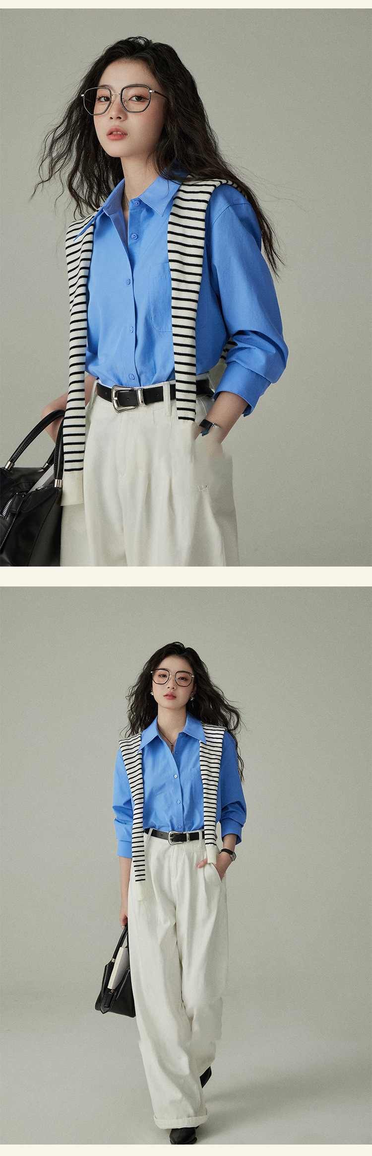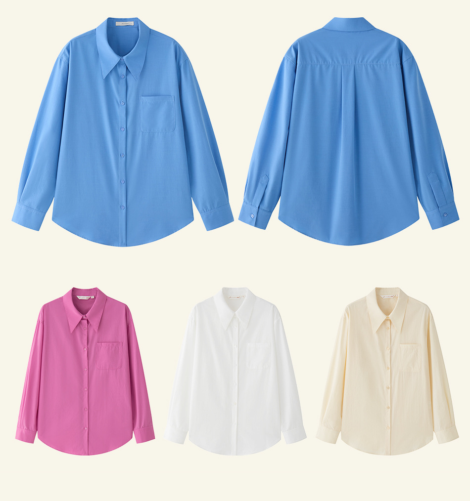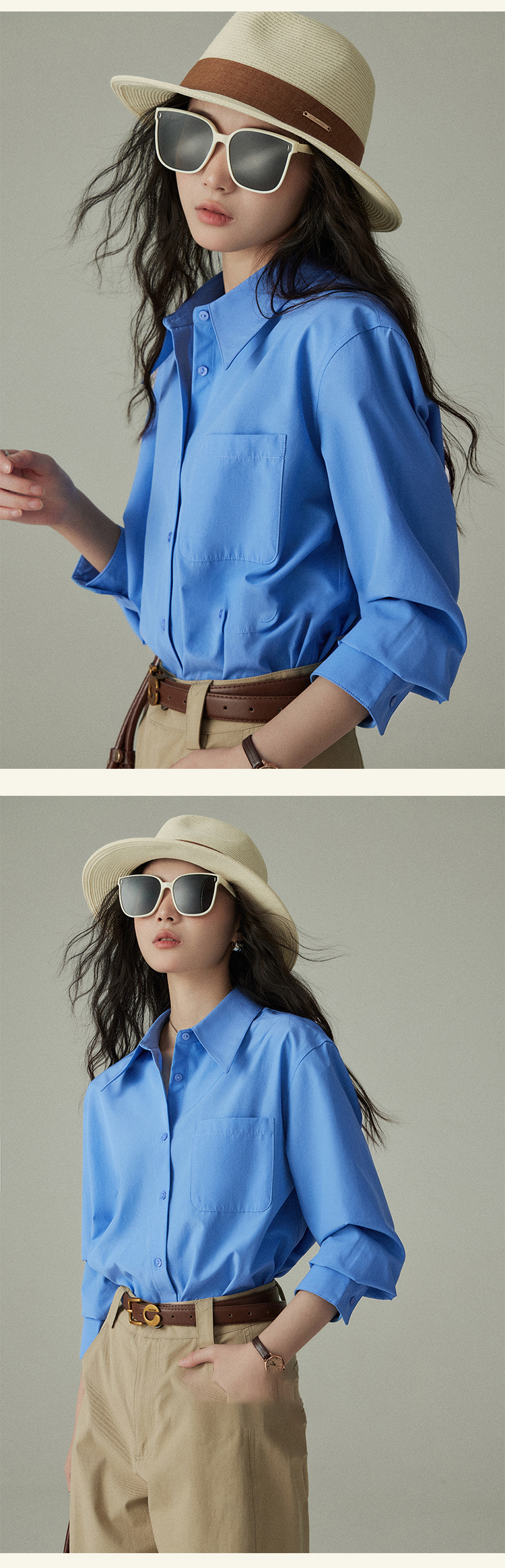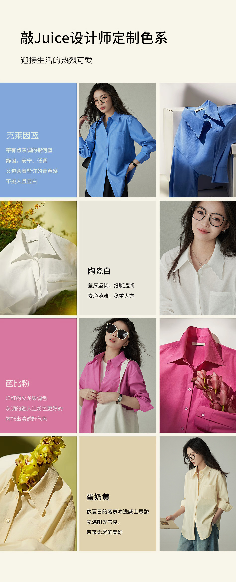 클라인 블루 주스 셔츠 여성의 봄 새로운 프랑스 스타일 공기 감각 전문 통근 느슨한 프로필 긴 소매 셔츠스토어 가기