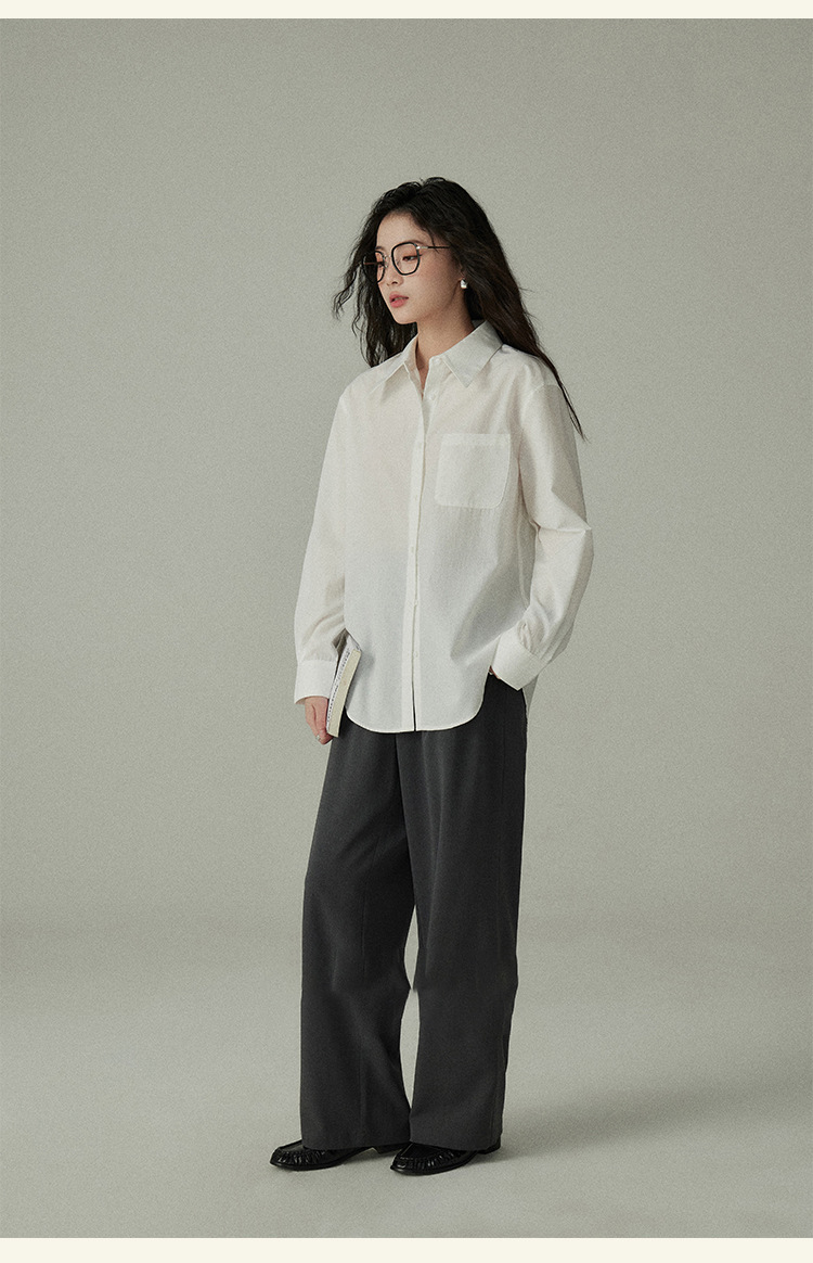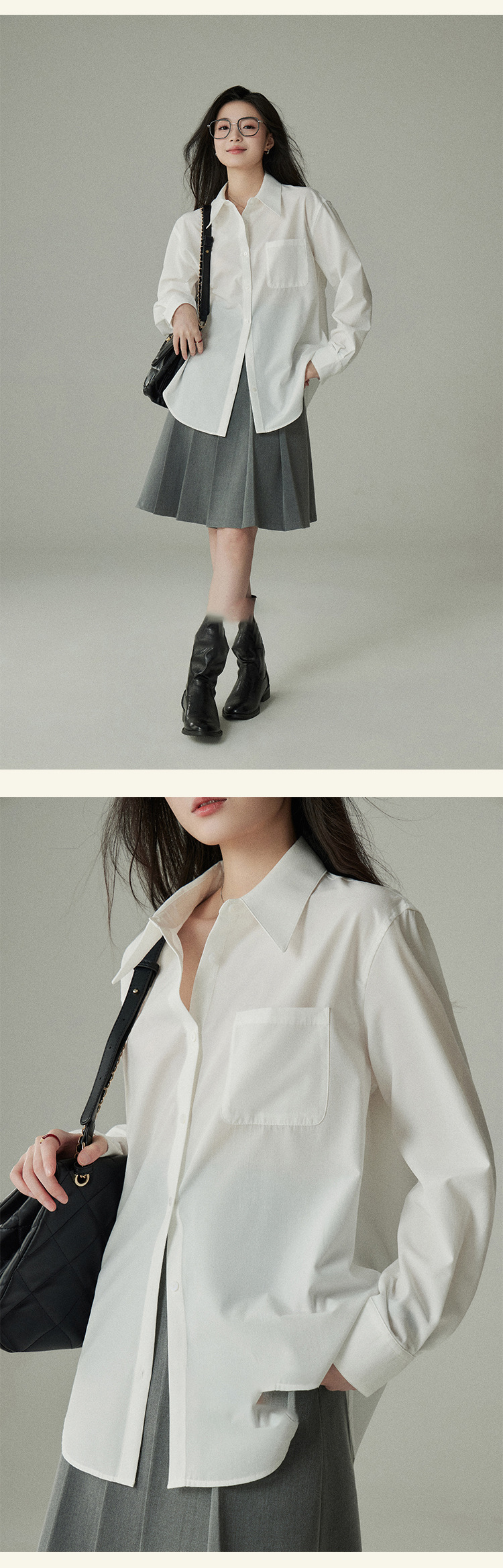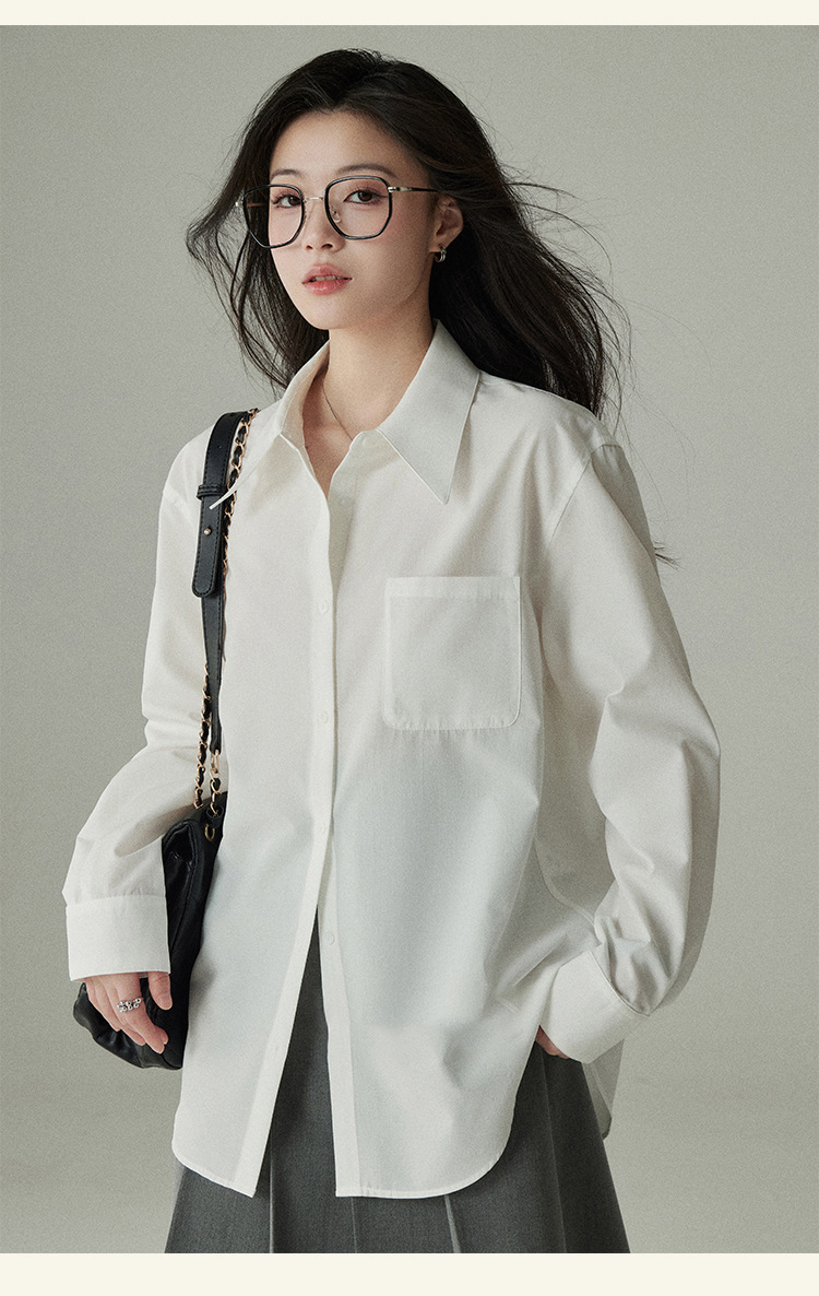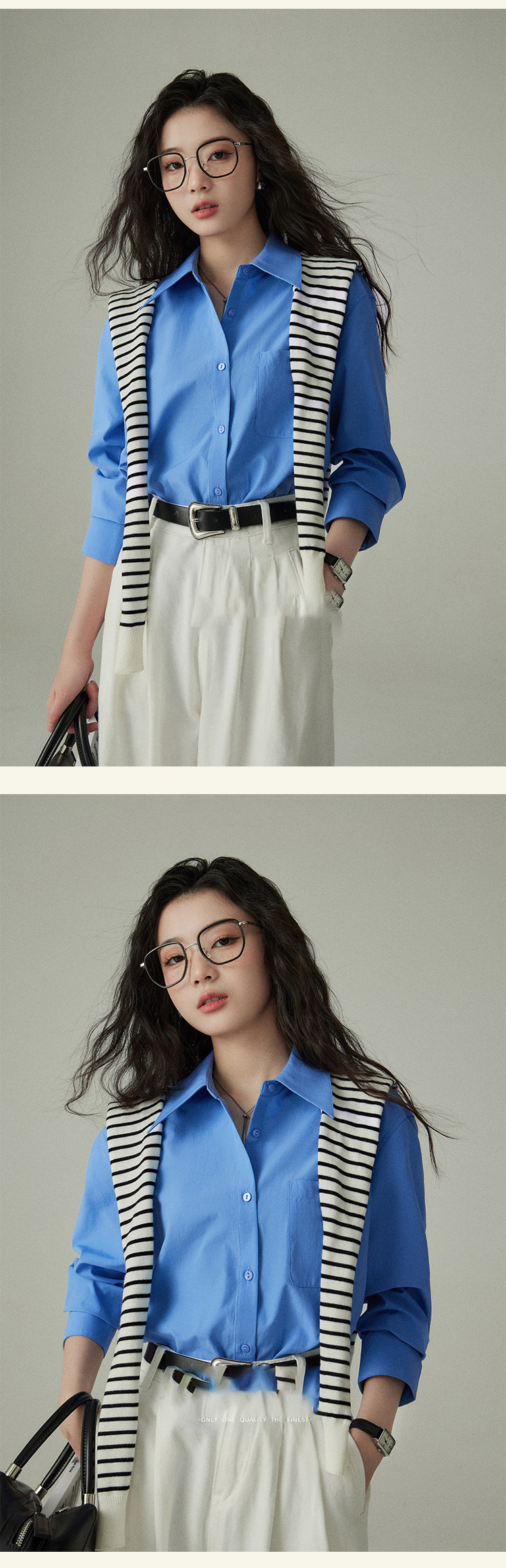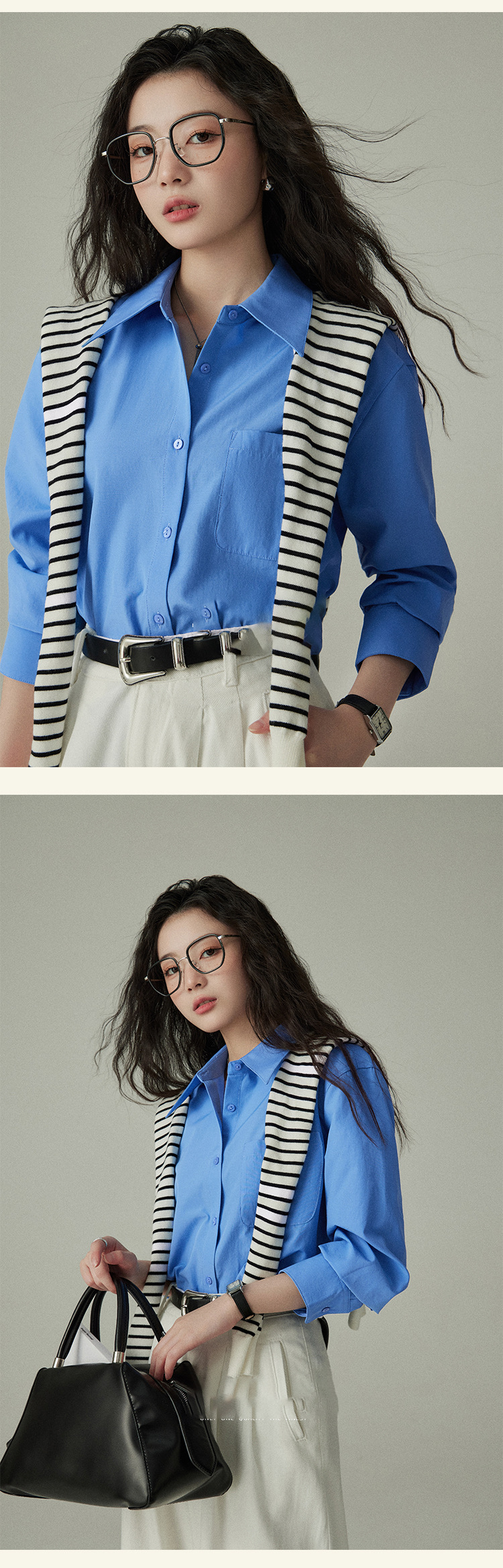 클라인 블루 주스 셔츠 여성의 봄 새로운 프랑스 스타일 공기 감각 전문 통근 느슨한 프로필 긴 소매 셔츠스토어 가기