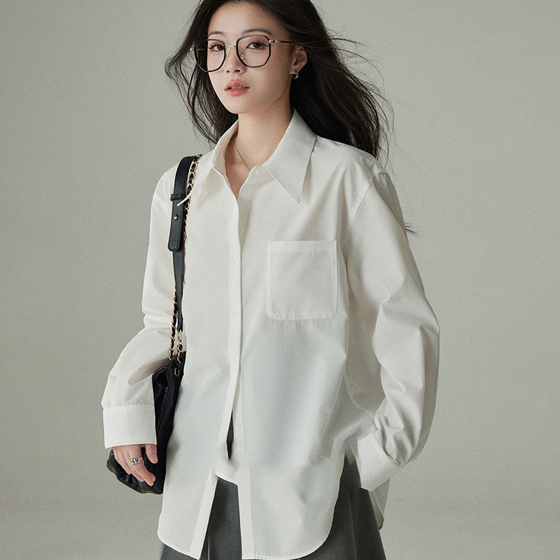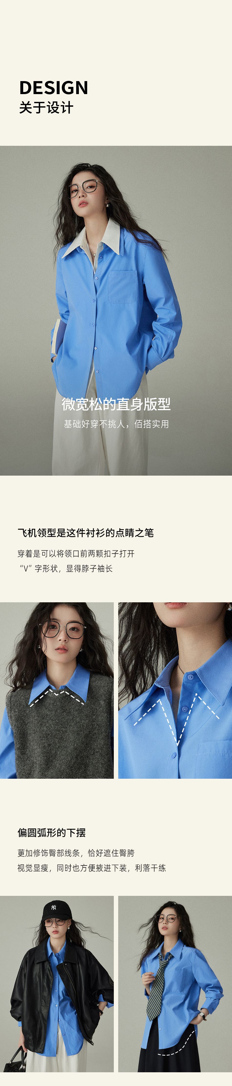 클라인 블루 주스 셔츠 여성의 봄 새로운 프랑스 스타일 공기 감각 전문 통근 느슨한 프로필 긴 소매 셔츠