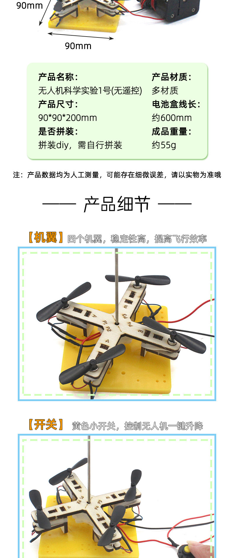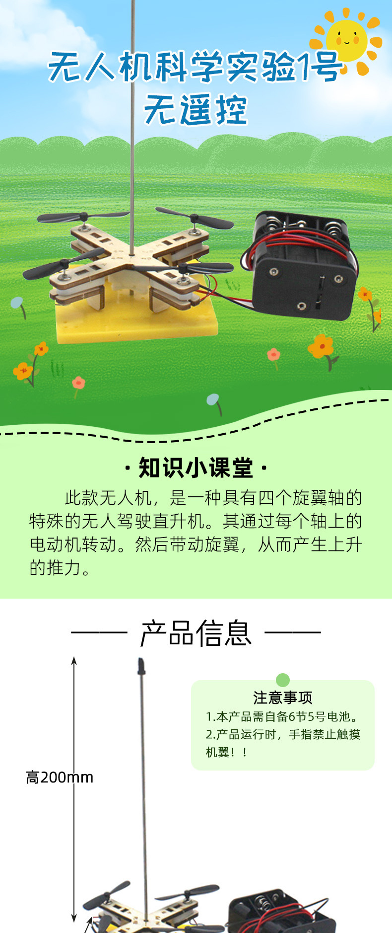 [공장 직접 공급] 드론 과학 실험 No. 1(리모컨 없음) 수제 DIY 작은 발명품 교육 보조 모델