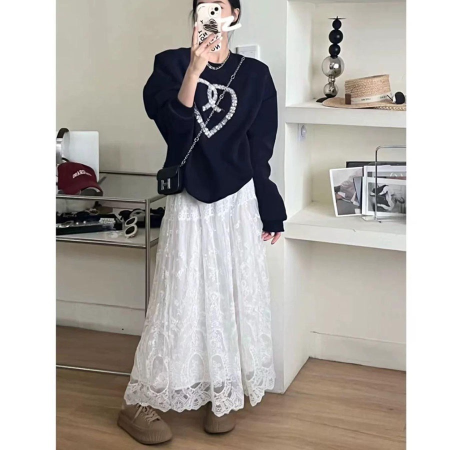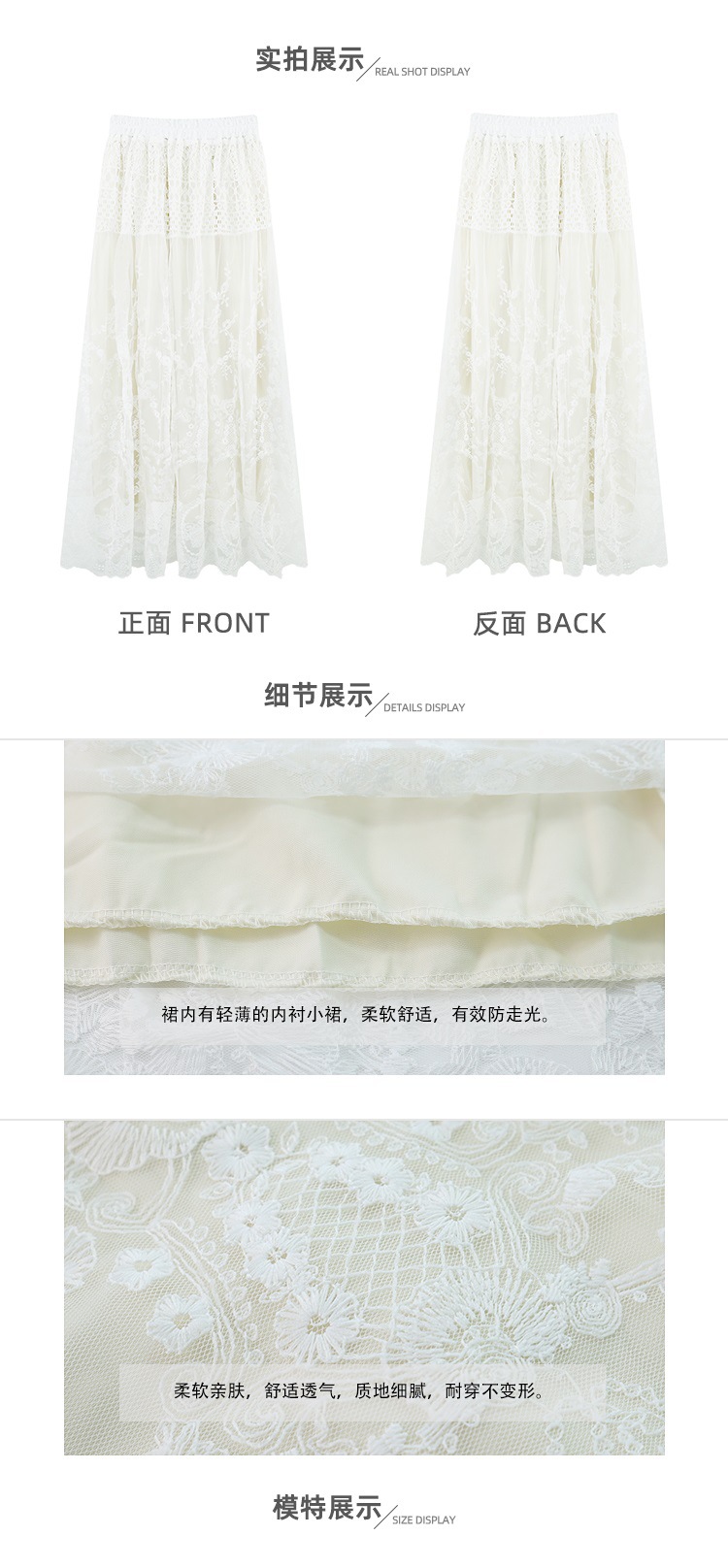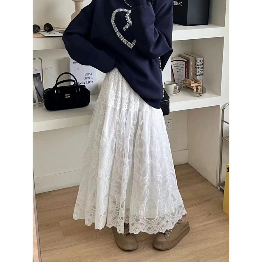 어린이를위한 레이스 미디 메쉬 스커트 2025 봄 새로운 도착 슬리밍 높은 허리 긴 스커트 슈퍼 페어리 스커트스토어 가기