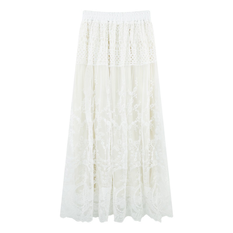어린이를위한 레이스 미디 메쉬 스커트 2025 봄 새로운 도착 슬리밍 높은 허리 긴 스커트 슈퍼 페어리 스커트