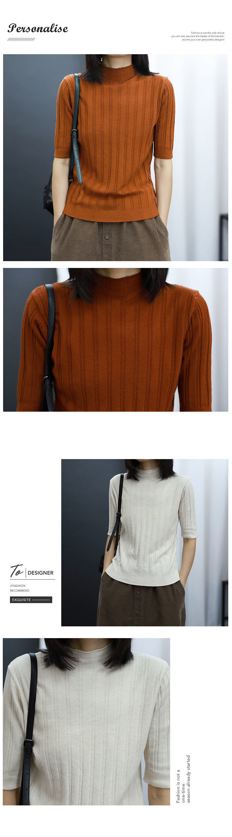 중간 소매 탑 한국 느슨한 슬림 스웨터 2025 봄과 가을 새로운베이스 셔츠 여성용 내부 하프 터틀넥 스웨터