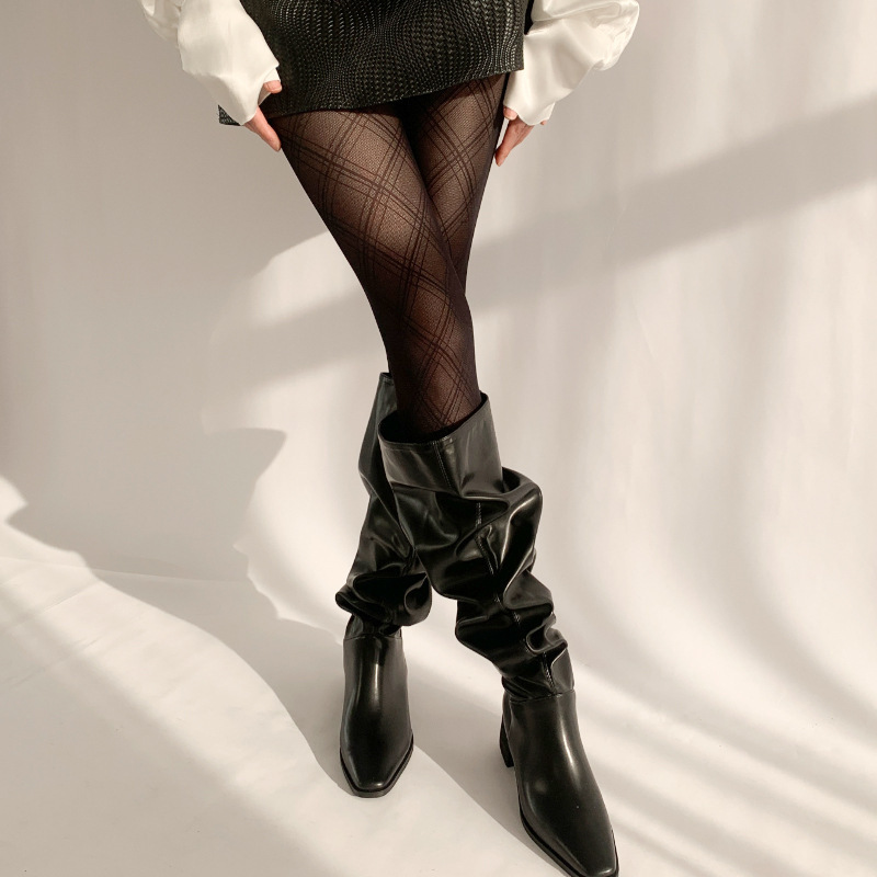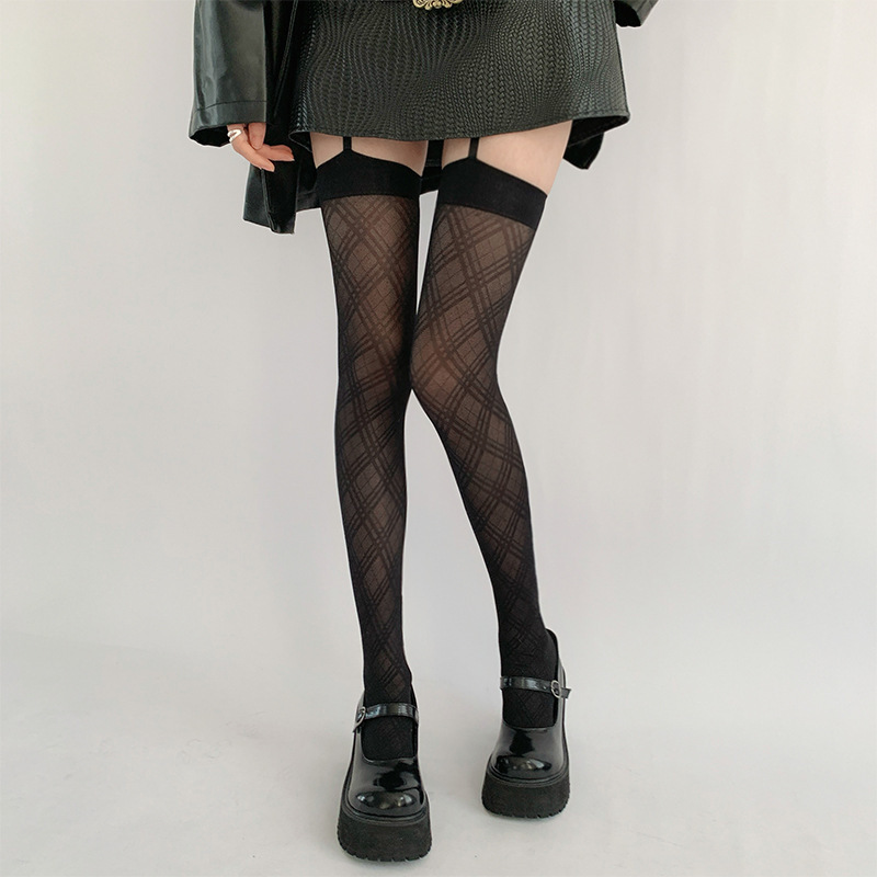 블랙 다이아몬드 격자 무늬 실크 스타킹 여성의 봄과 가을 얇은 섹시한 블랙 실크 슬리밍 팬티 스타킹 피쉬 스타킹스토어 가기