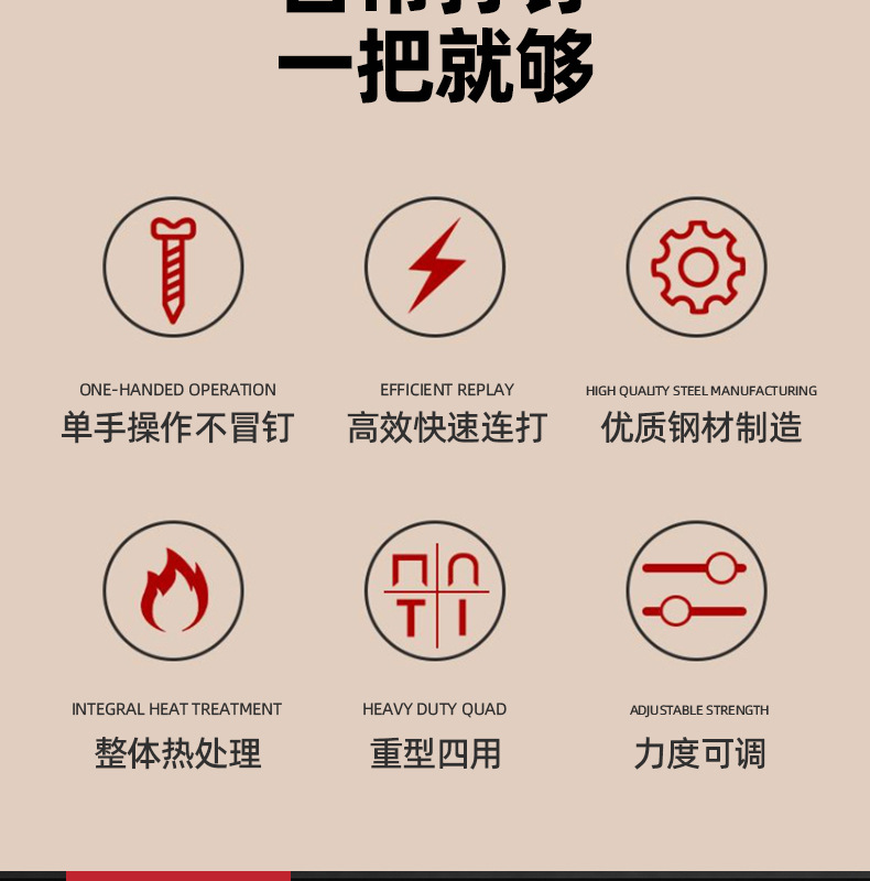 • [Six-in-one] 산업용 고강도, 노동력 절약형 모델 + 못 6종 각 100개