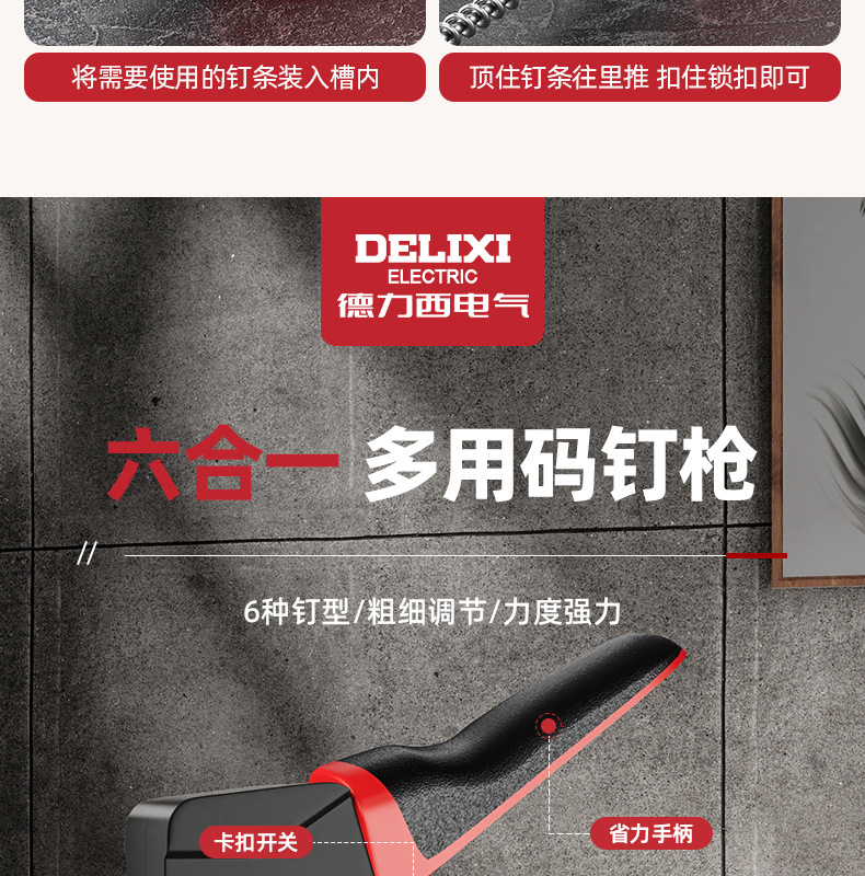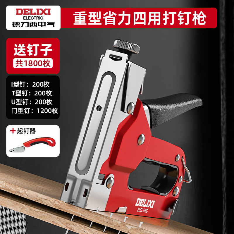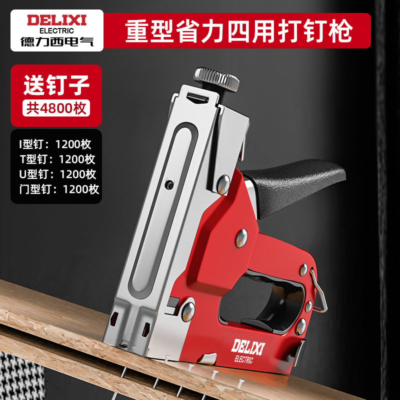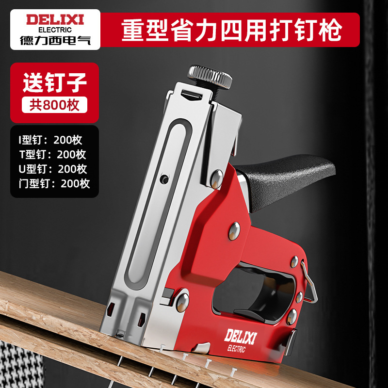 Delixi 전기 못 박는 기계 수동 4-in-1 장식용 가정용 못 박는 기계 목재 보드 가구 목공 못 박는 기계