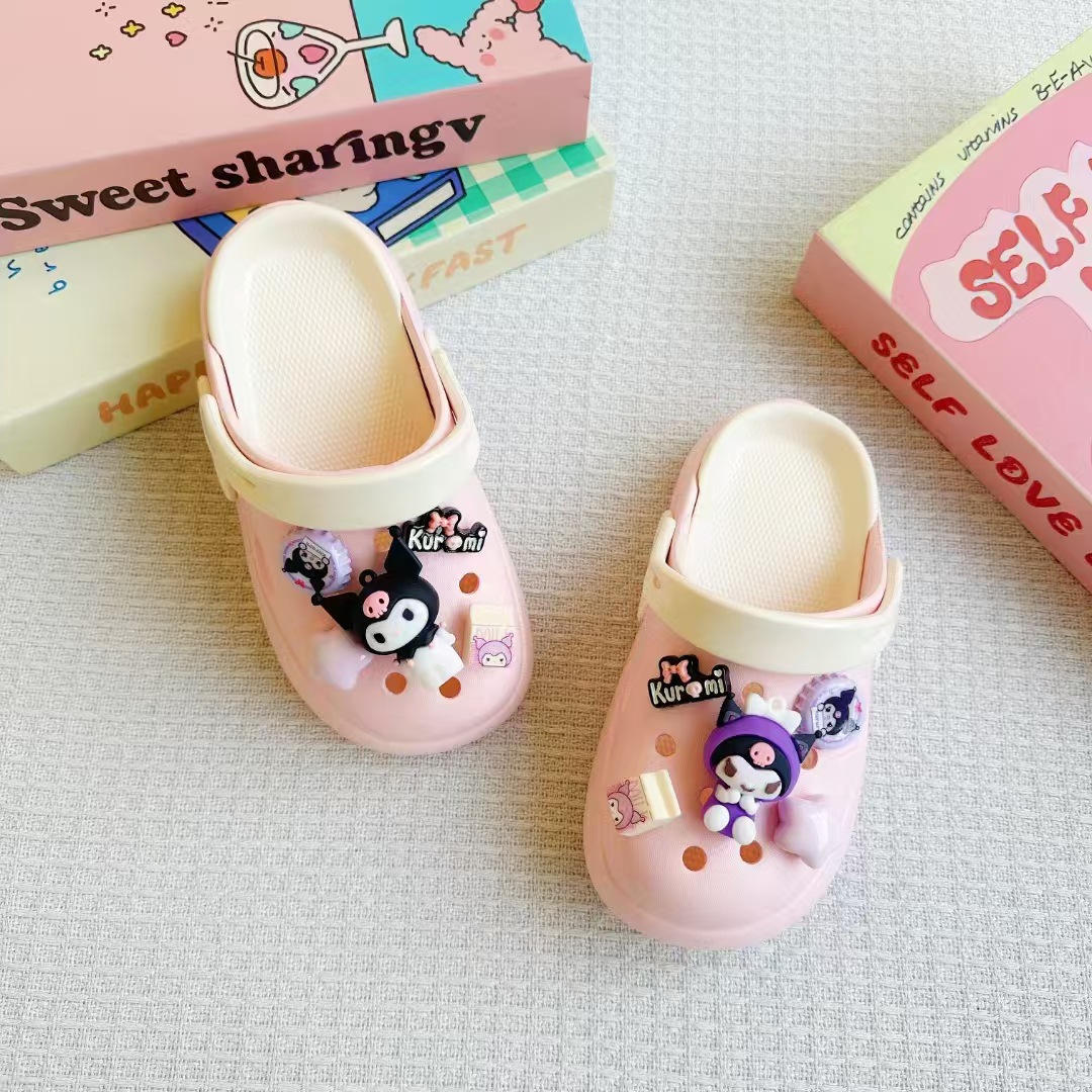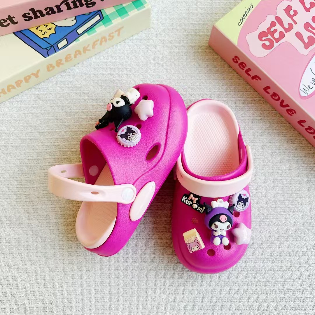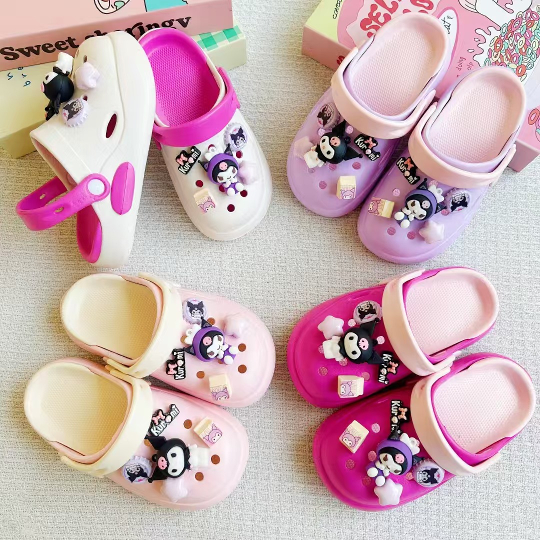 새로운 소년 소녀 슬리퍼 만화 커피 랩 헝겊 더블 컬러 올 매치 홀 신발 소프트 단독 미끄럼 방지 발가락 샌들
