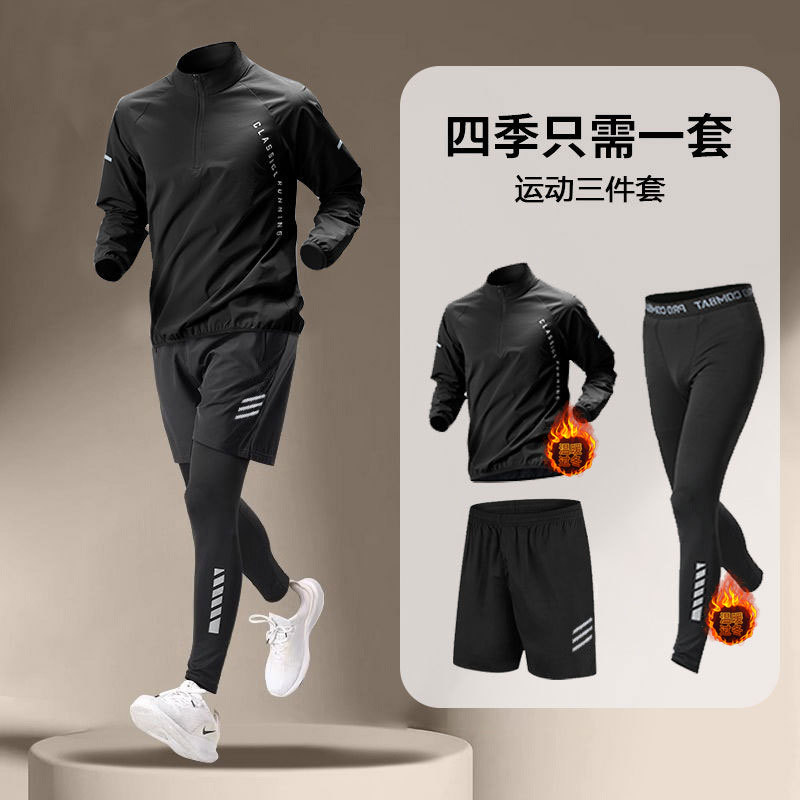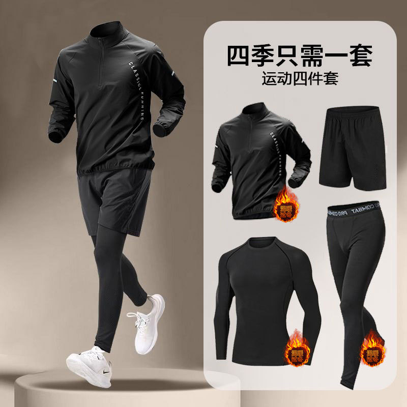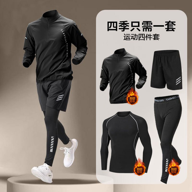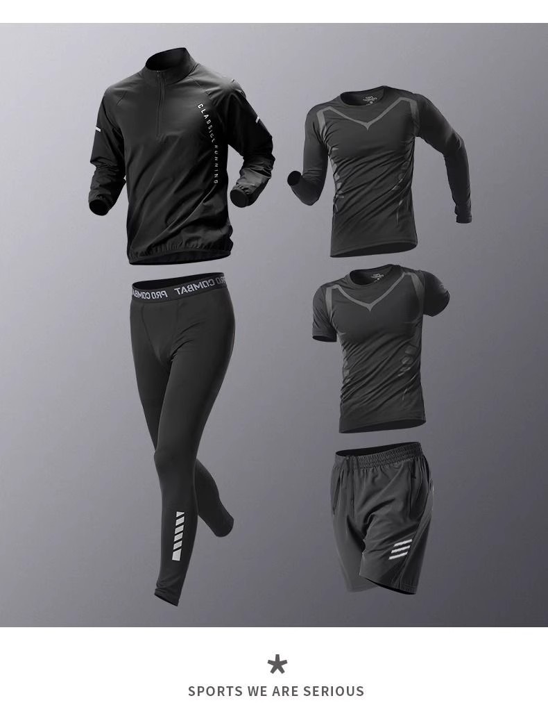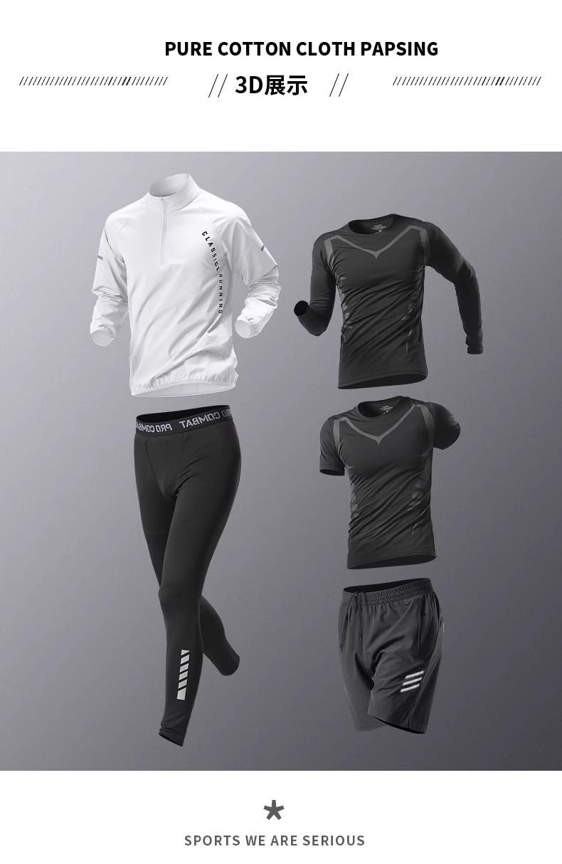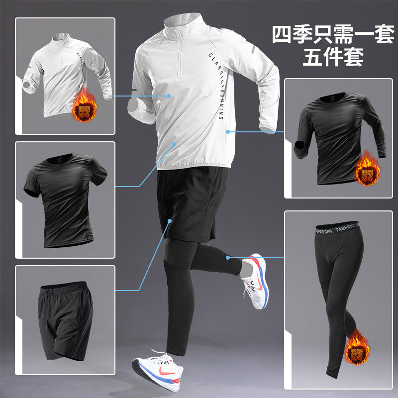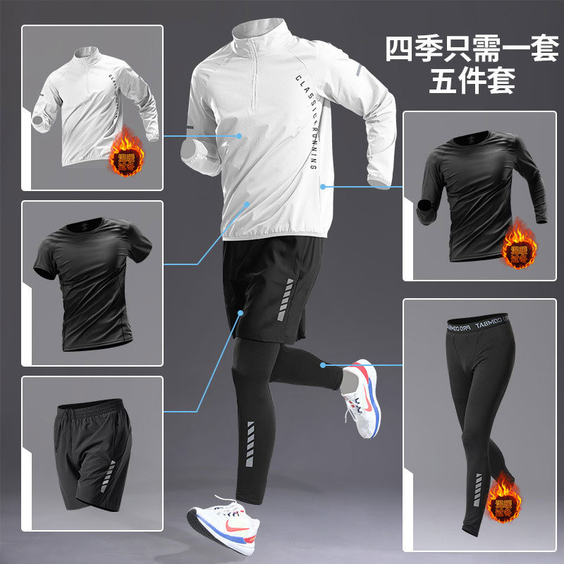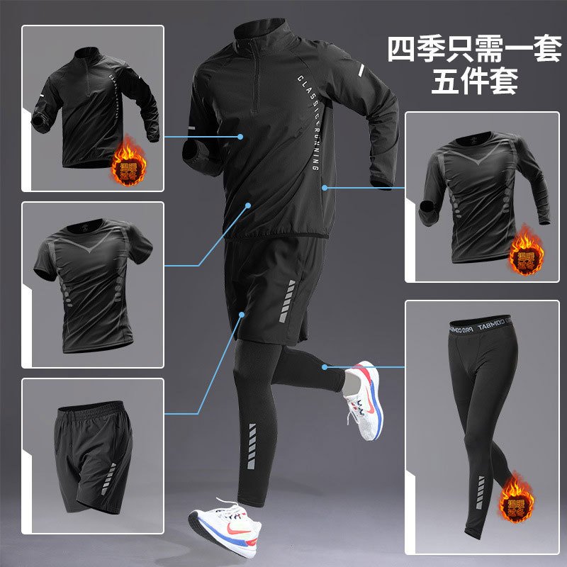 국경 간 Taobao 인기 스포츠 정장 남성 달리기 훈련 의류 속건 의류 피트니스 사이클링 장비 아침 달리기 5 피스 세트스토어 가기