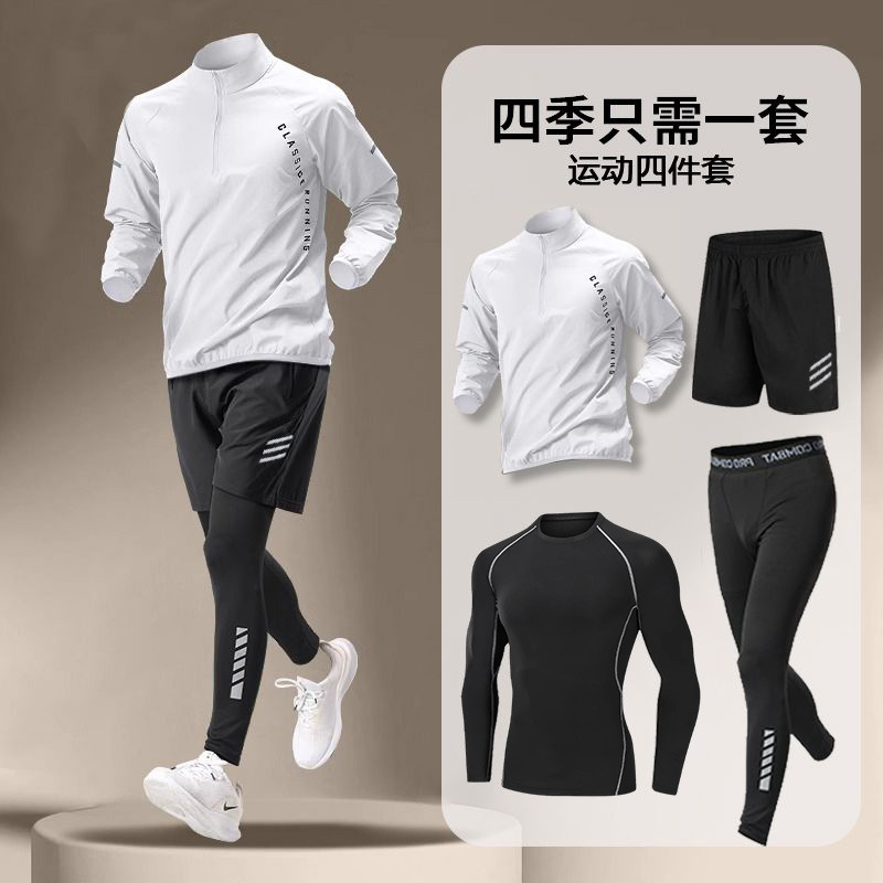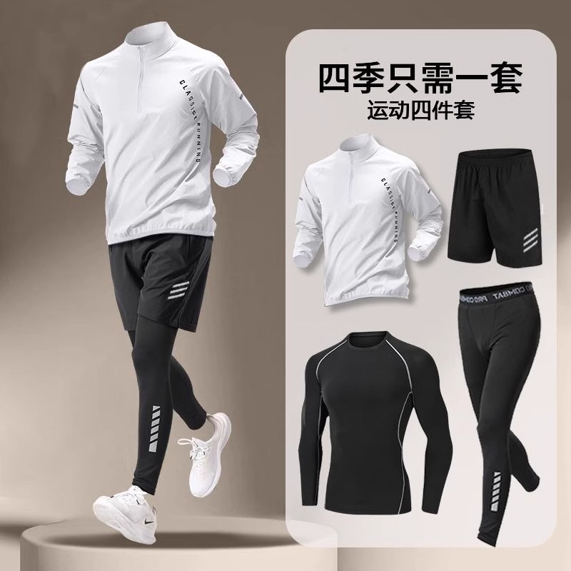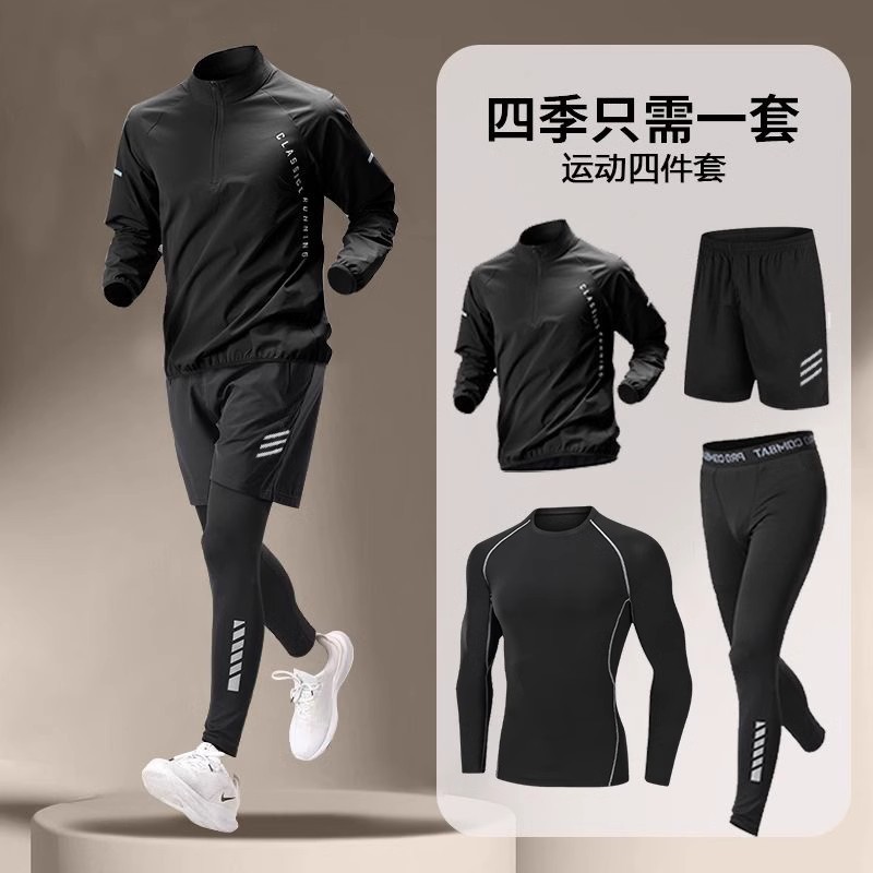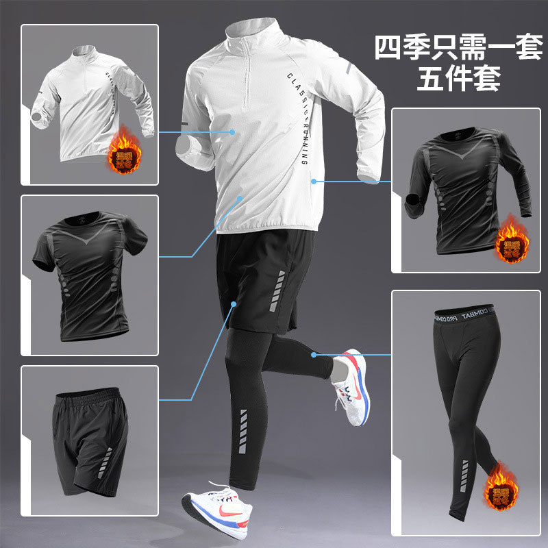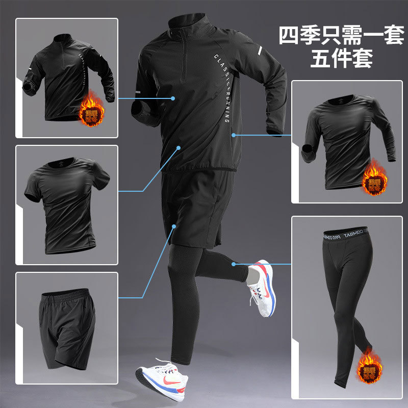 국경 간 Taobao 인기 스포츠 정장 남성 달리기 훈련 의류 속건 의류 피트니스 사이클링 장비 아침 달리기 5 피스 세트