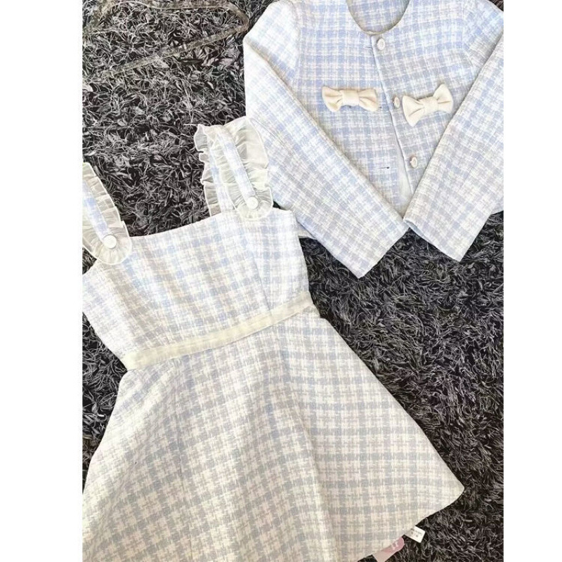 • [3종세트] 탑 + 자켓 + 서스펜더 스커트