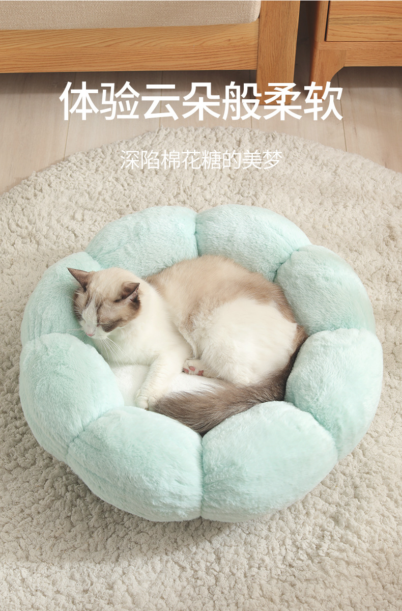 겨울 고양이 둥지 꽃 둥지 고양이 목 보호 봉제 둥지 고양이 매트 고양이 둥지 사계절 애완 동물을위한 유니버설 라운드 사육장