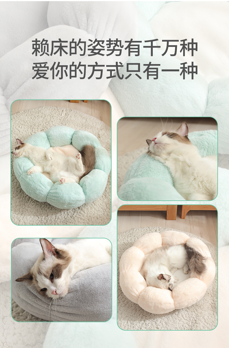 겨울 고양이 둥지 꽃 둥지 고양이 목 보호 봉제 둥지 고양이 매트 고양이 둥지 사계절 애완 동물을위한 유니버설 라운드 사육장스토어 가기