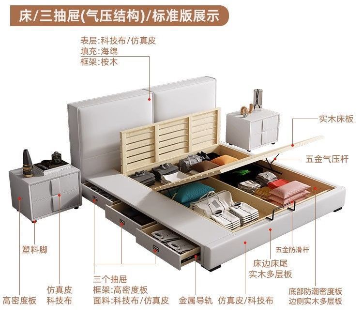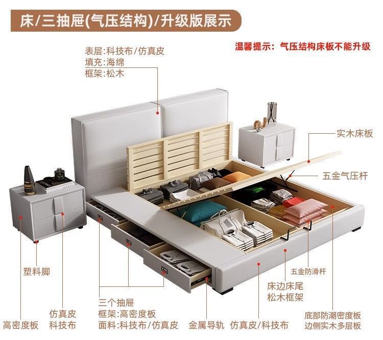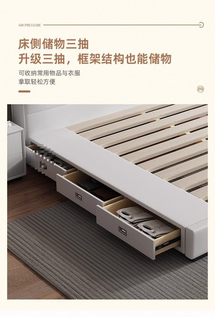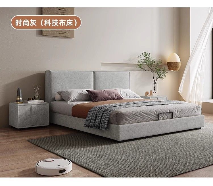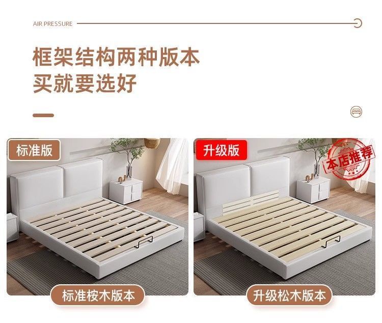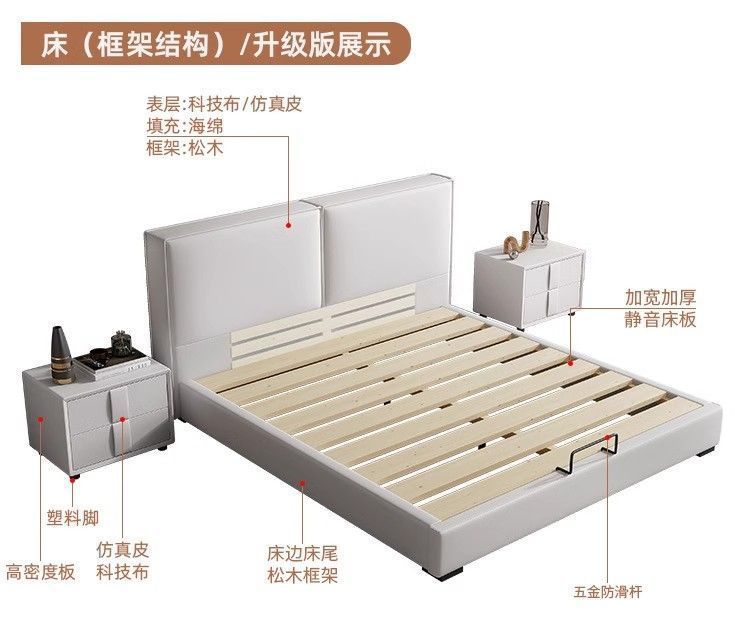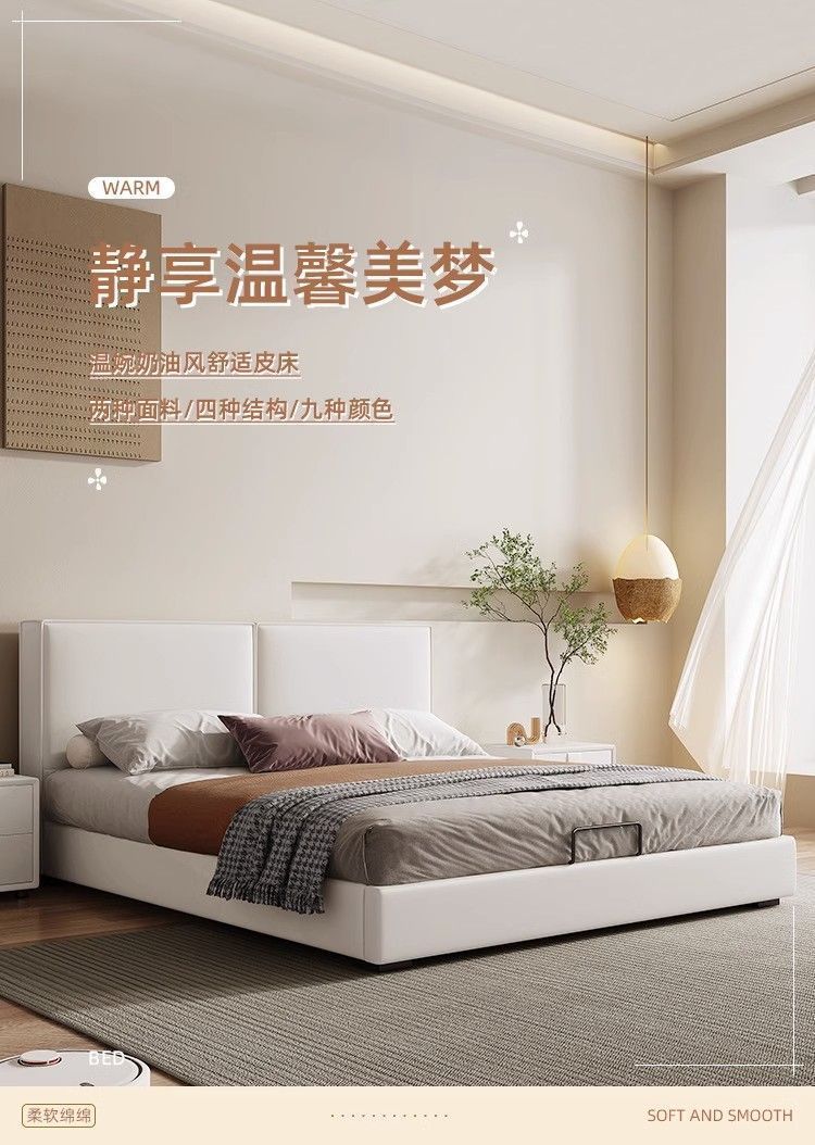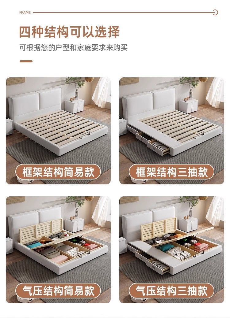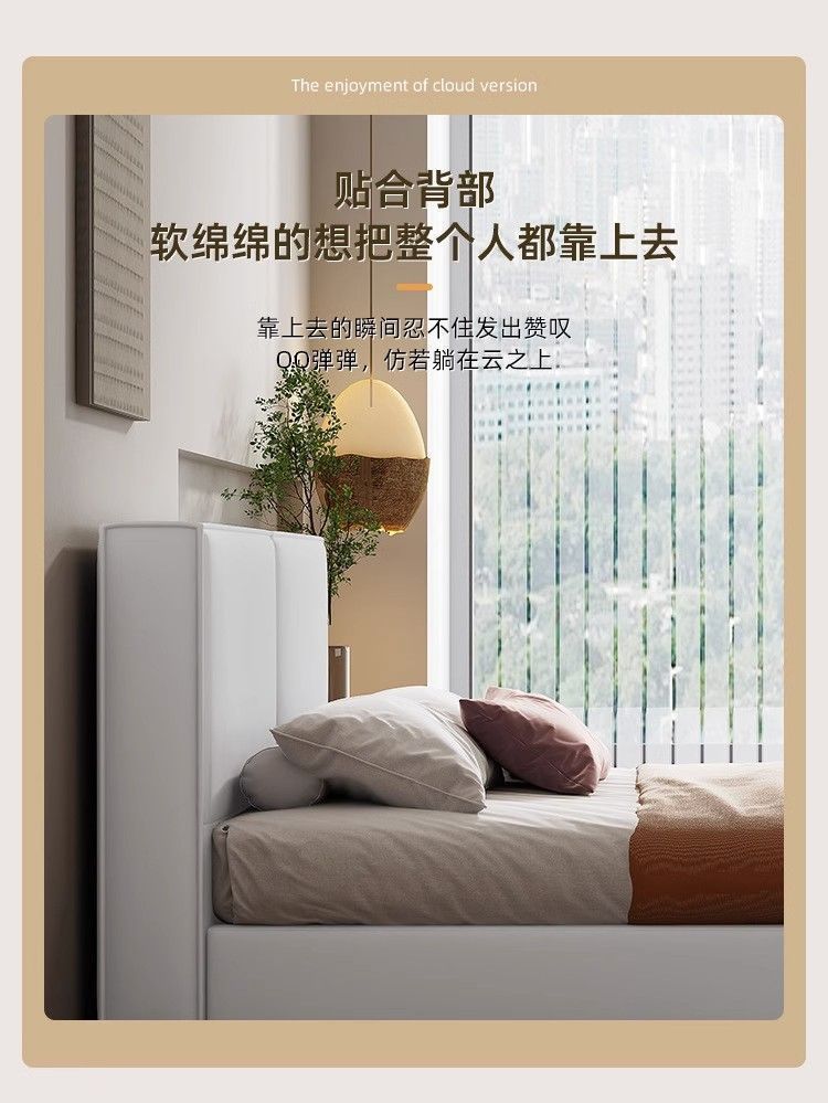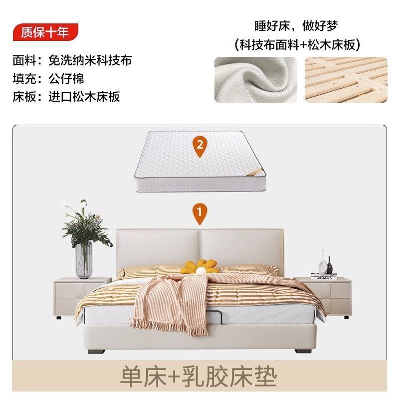 두부 블록 백스터 정품 가죽 더블 기술 천 퀸 침대 빛 럭셔리 마스터 침실 현대 간단한 작은 아파트 크림 스타일 침대스토어 가기