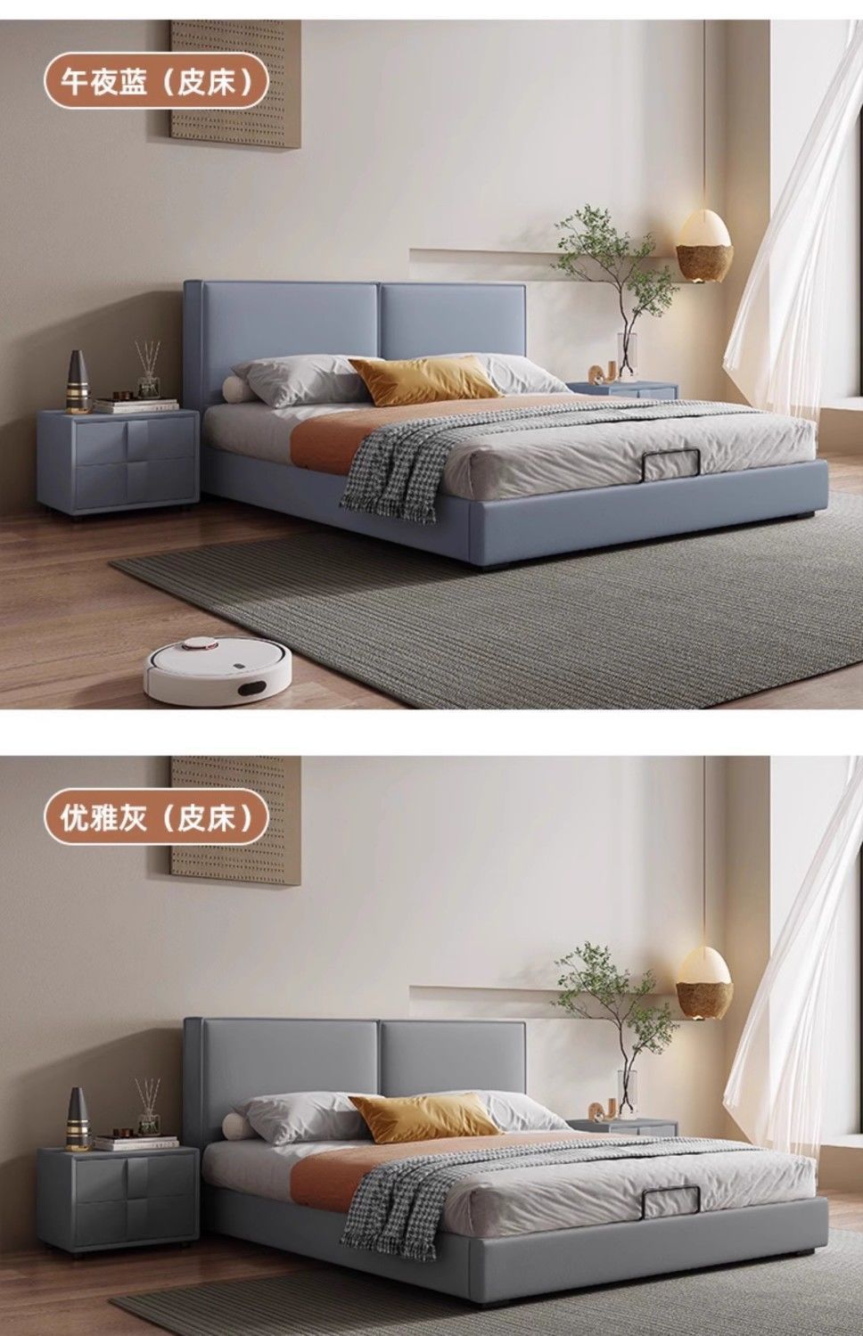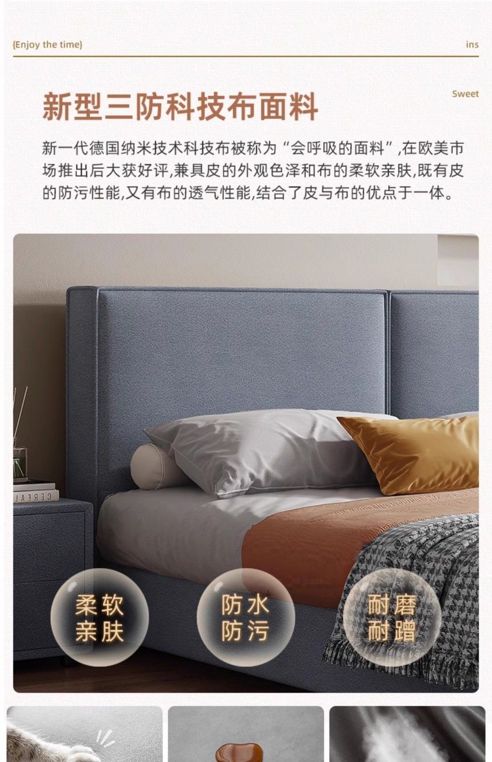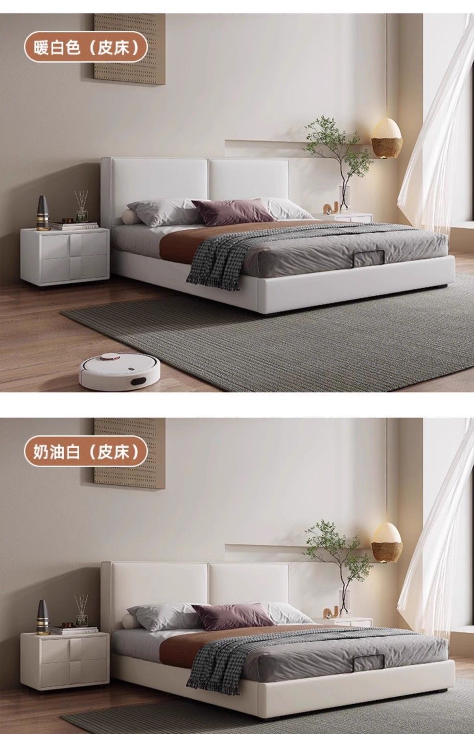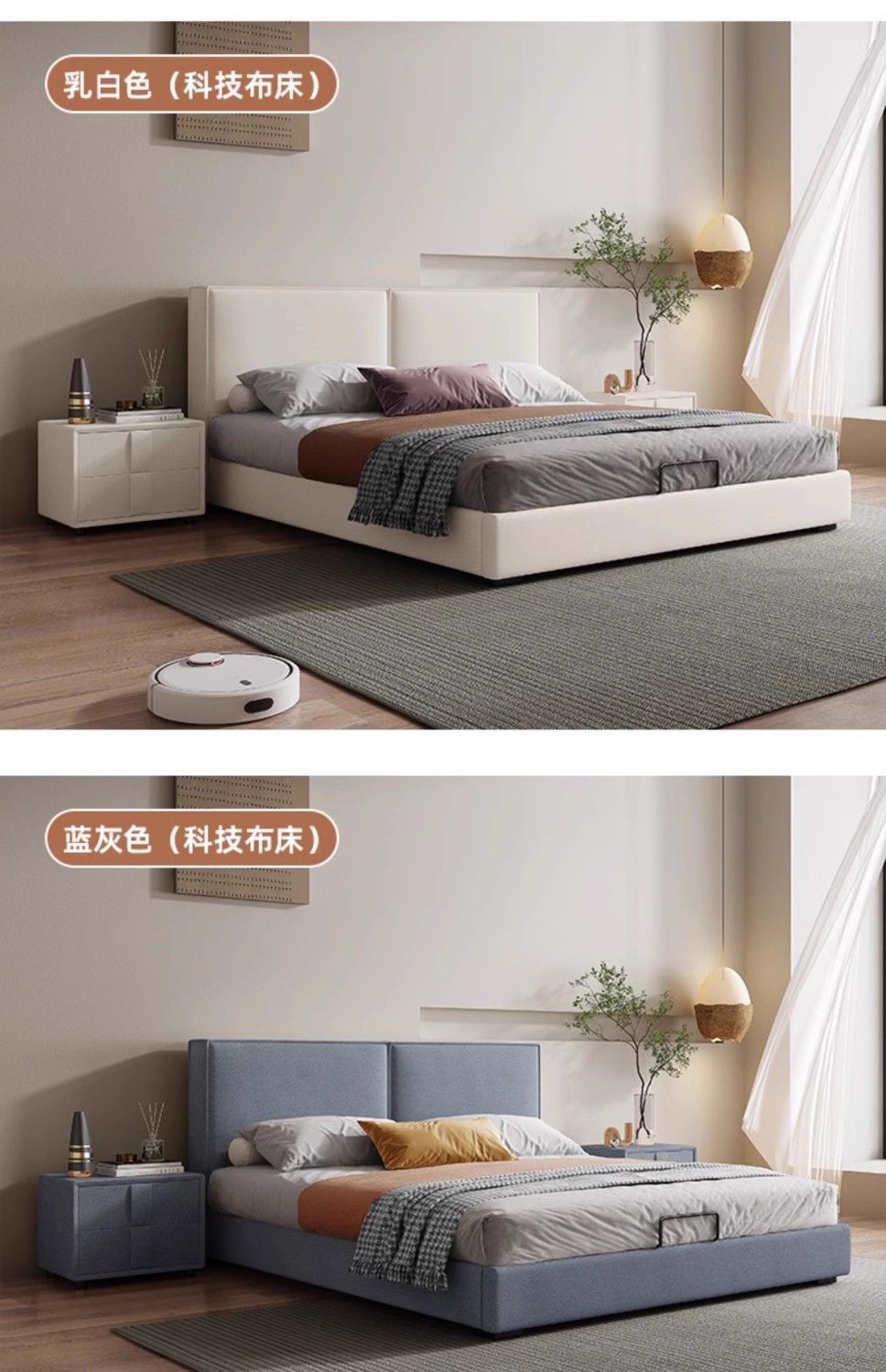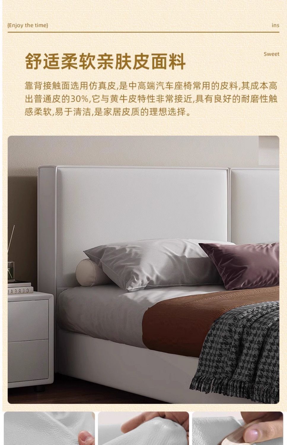 두부 블록 백스터 정품 가죽 더블 기술 천 퀸 침대 빛 럭셔리 마스터 침실 현대 간단한 작은 아파트 크림 스타일 침대스토어 가기