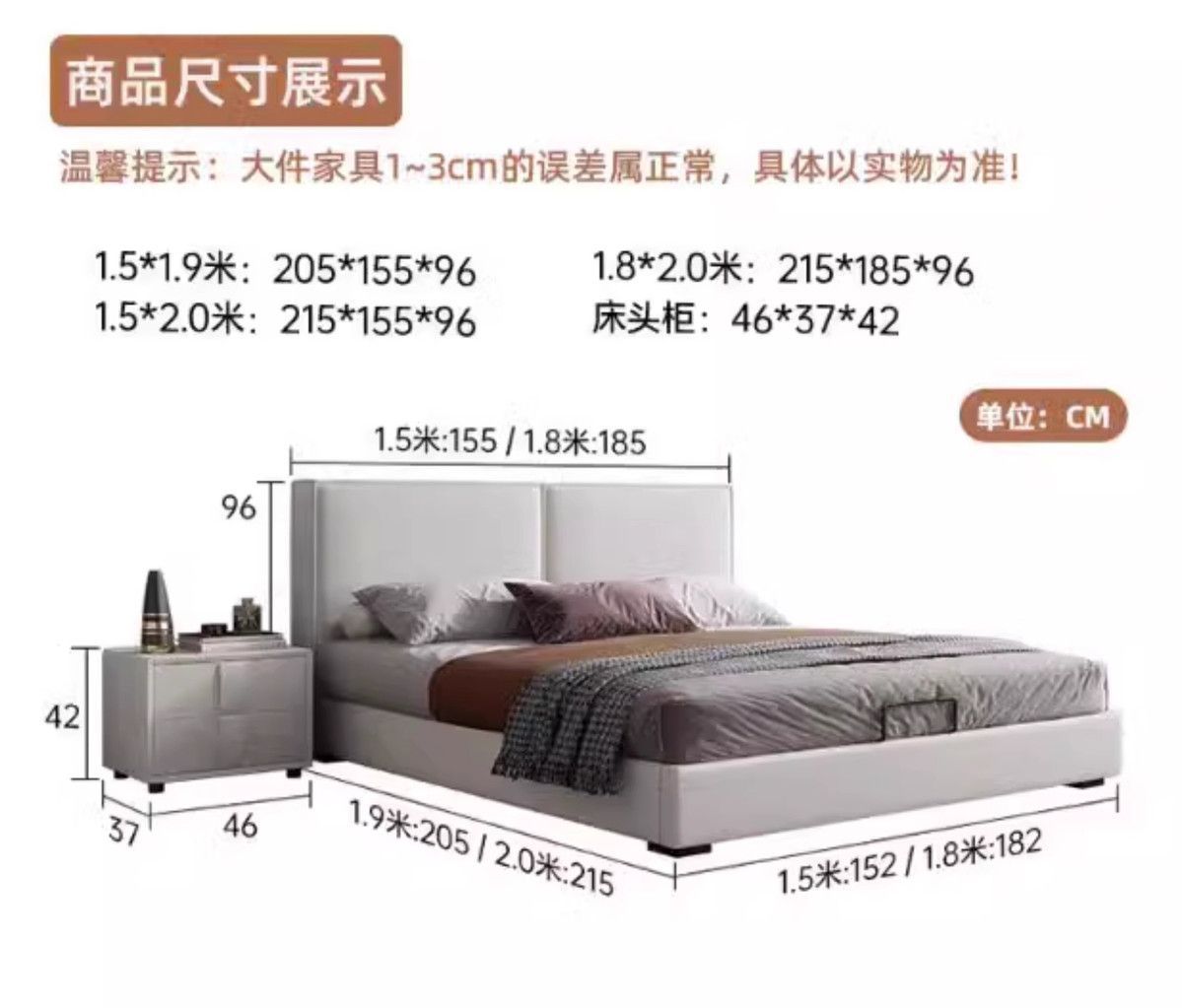 • 침대 + 캐시미어 매트리스 + 캐비닛 2개