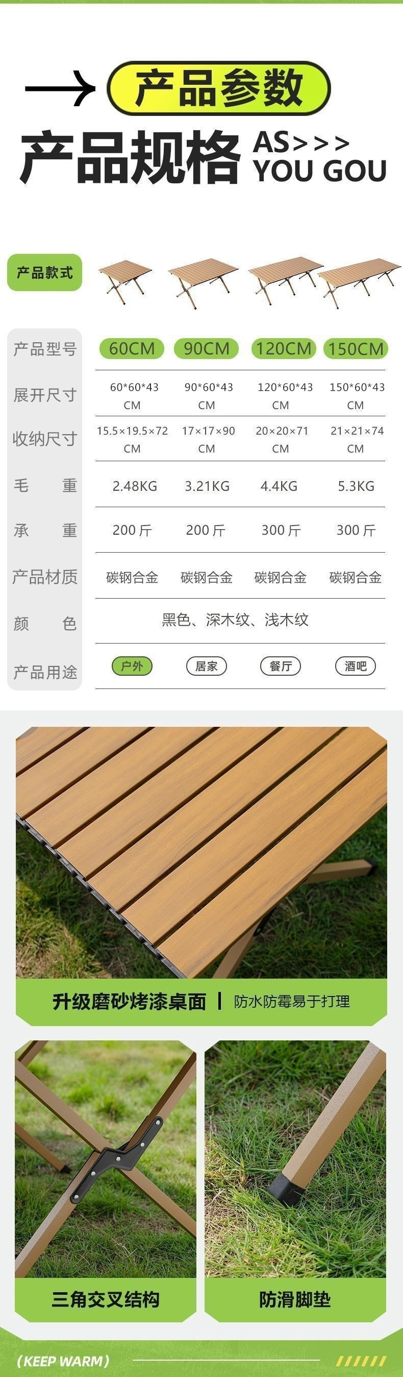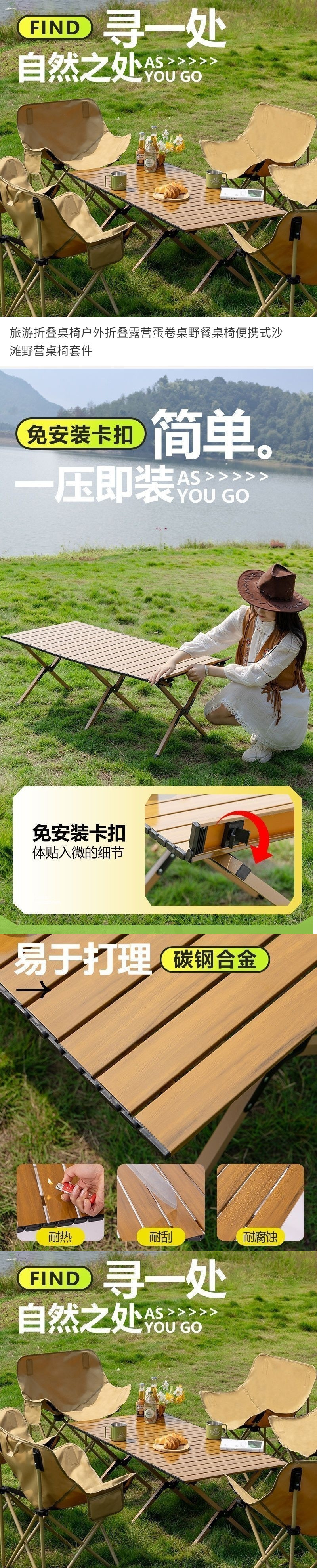 계란 롤 테이블과 의자 피크닉 테이블 캠핑 피크닉 여행 삼각형 캠핑 야외 휴대용 접이식 경량 필드 이슬스토어 가기