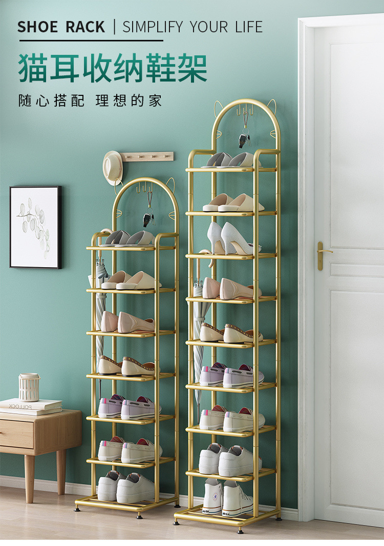 신발 랙 문 강한 간단한 가정 임대 주택 기숙사 경제적 철 작은 좁은 저장 신발 캐비닛스토어 가기