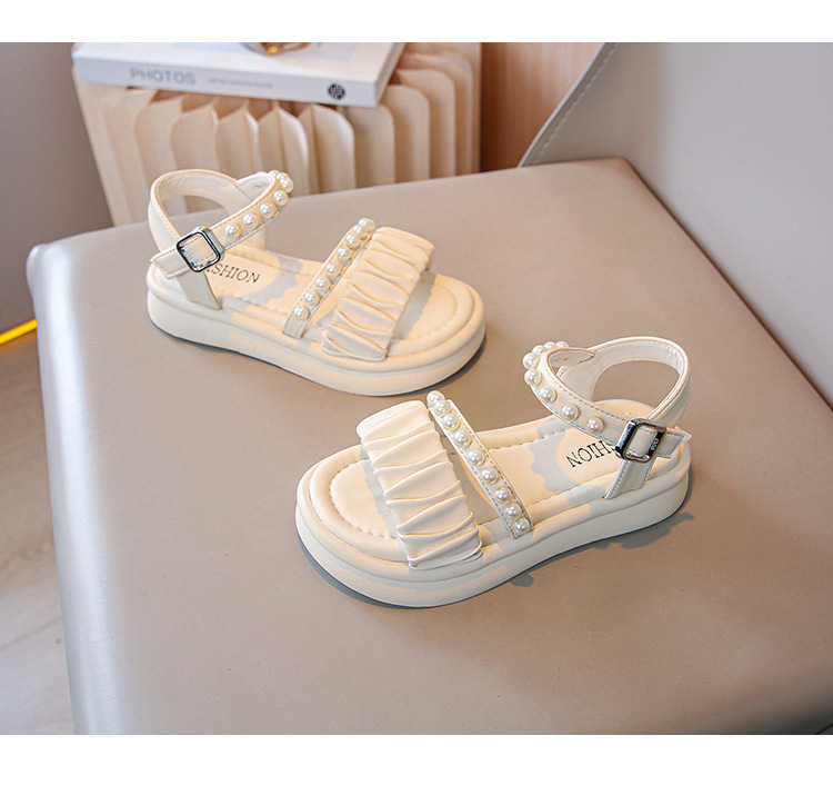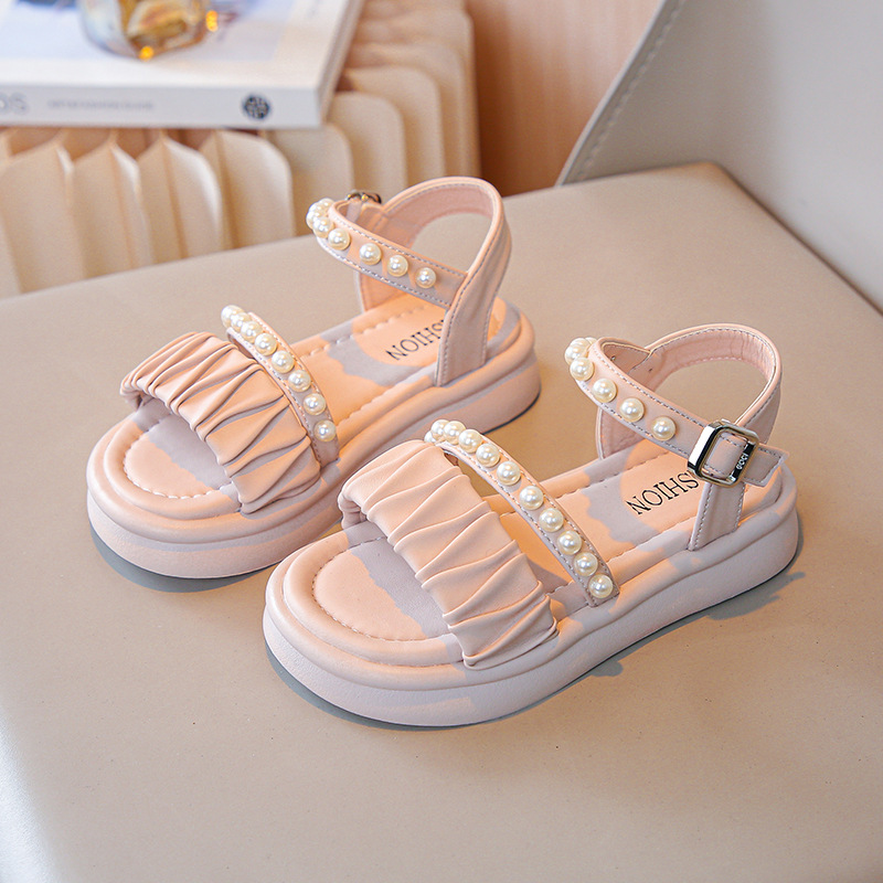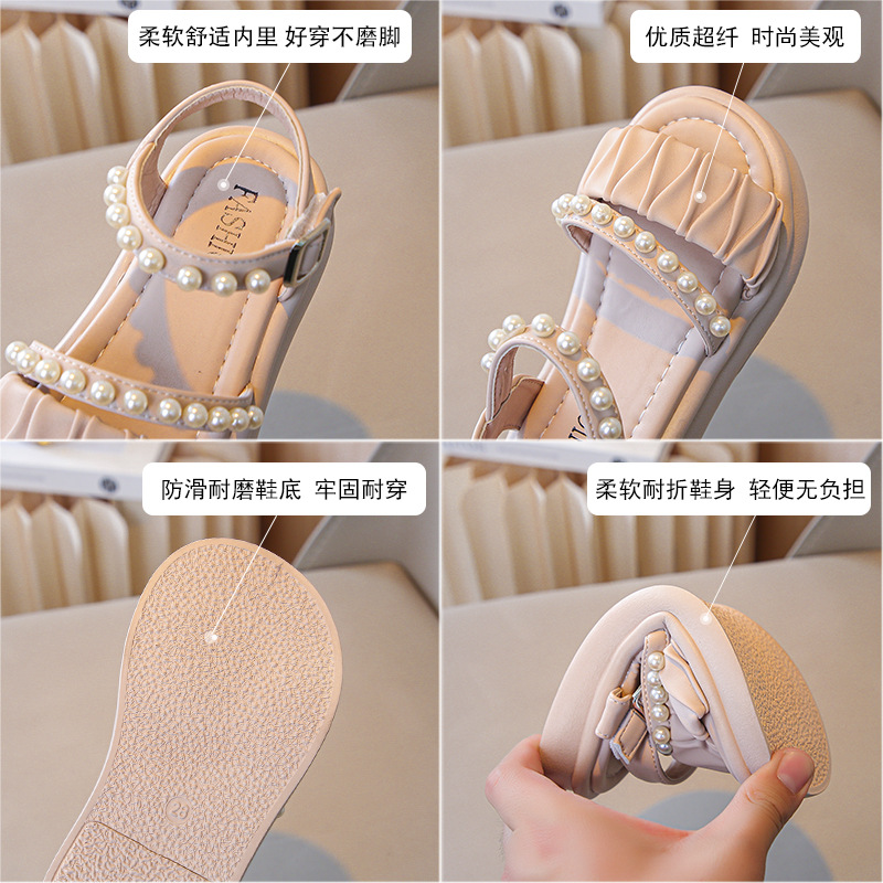 여자 샌들 2025 여름 서양 소녀의 부드러운 밑창 진주 공주 신발 큰 어린이 오픈 발가락 비치 신발스토어 가기