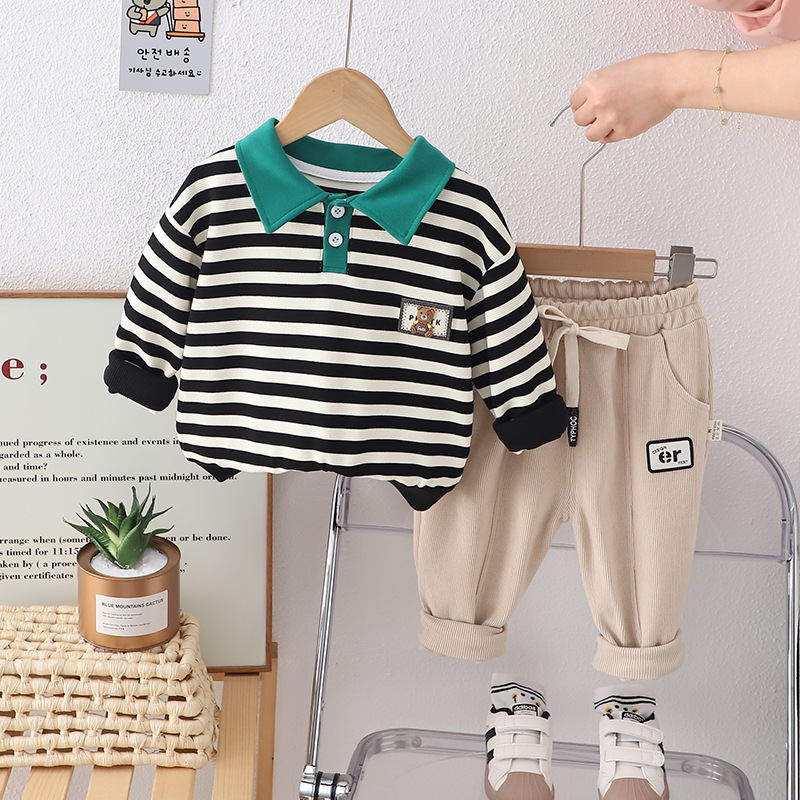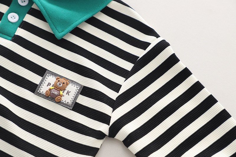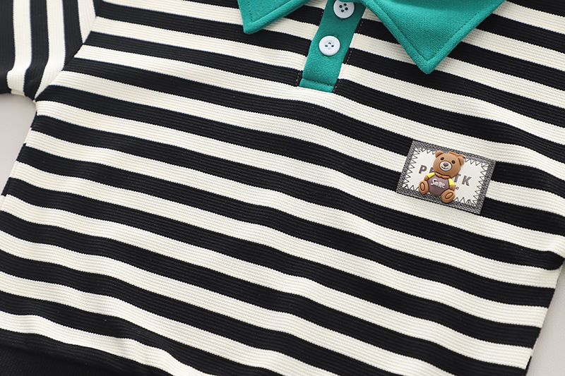 봄 세트 2025 봄과 가을 소년 어린이 새로운 어린이 서양식 줄무늬 입체 곰 긴 소매 세트스토어 가기