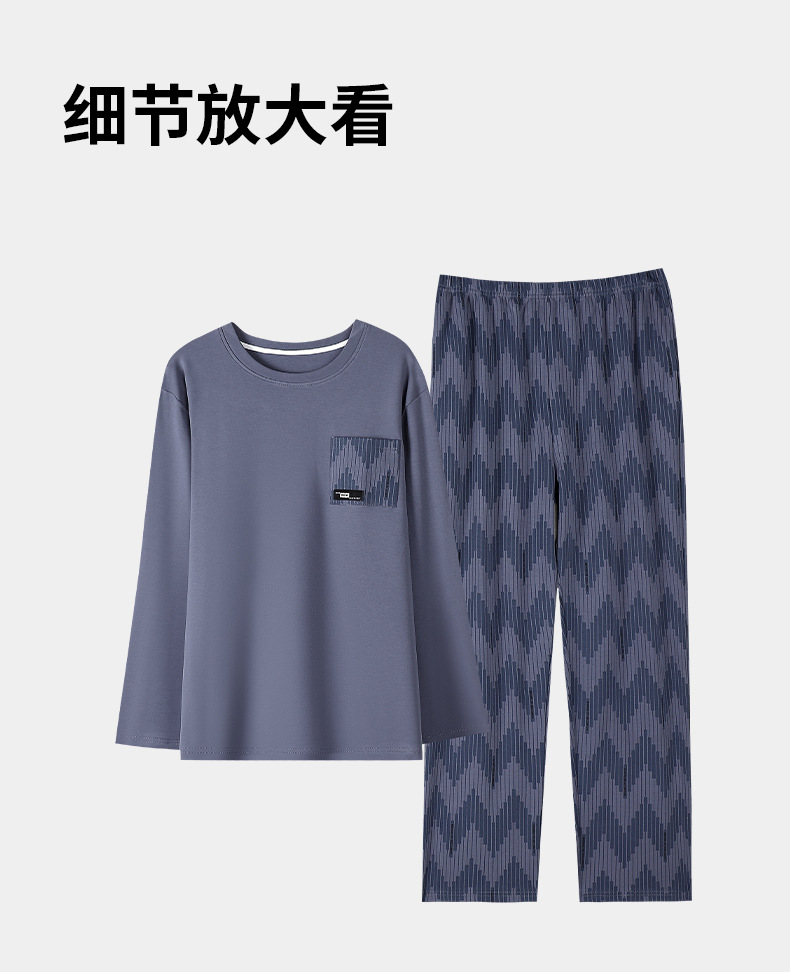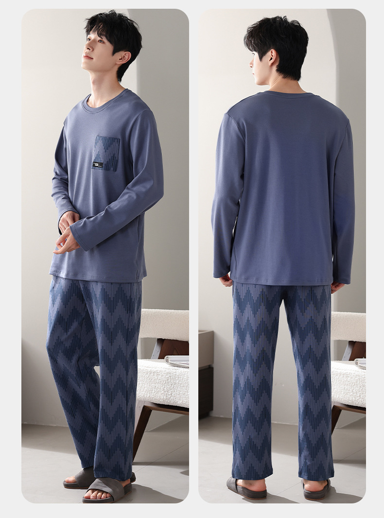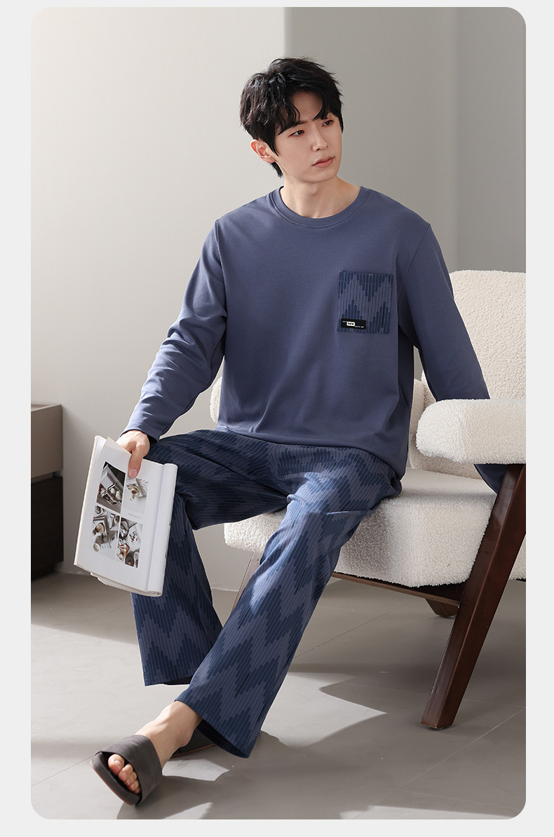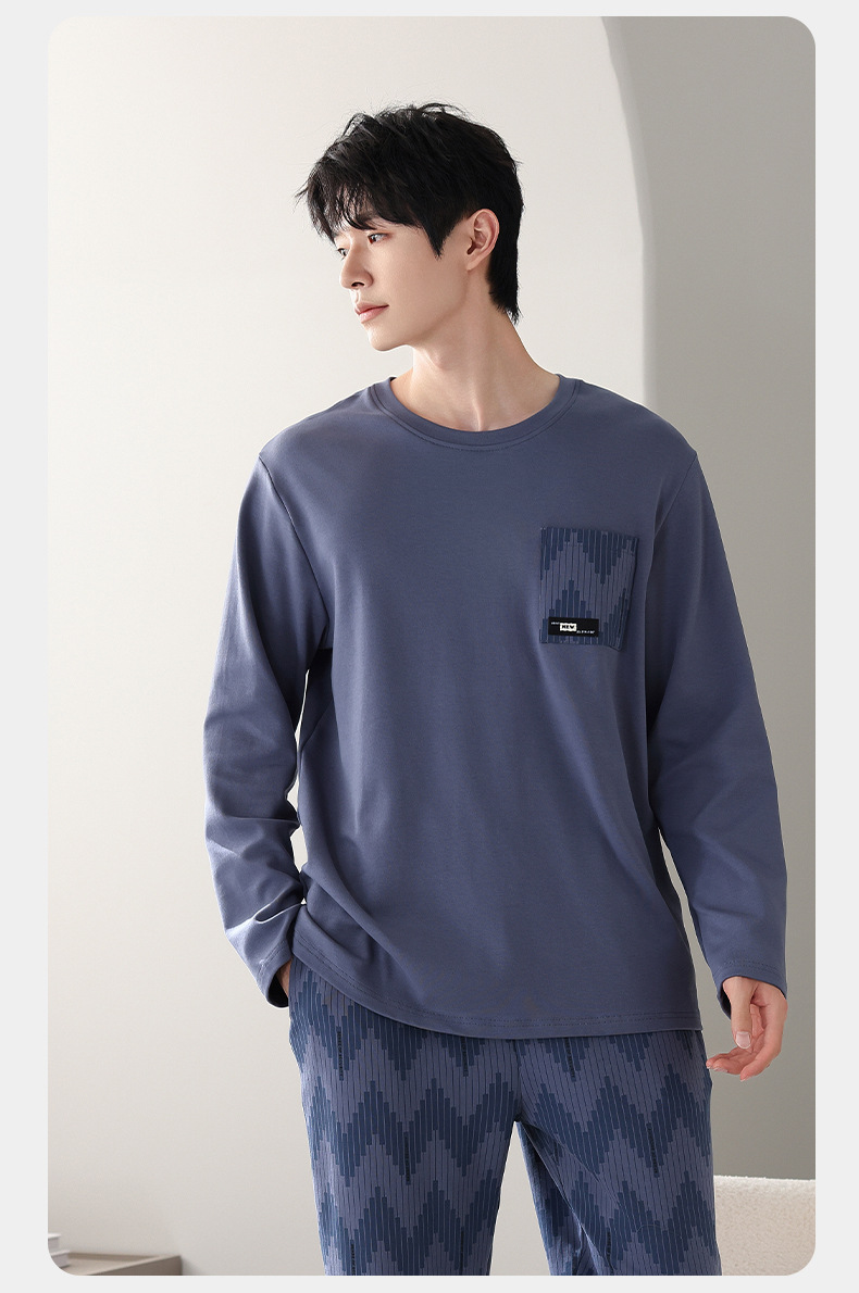 잠옷 남자의 봄과 가을 순면 단색 긴 소매 간단한 패션 남자의 사계절 플러스 사이즈 면 홈 옷스토어 가기