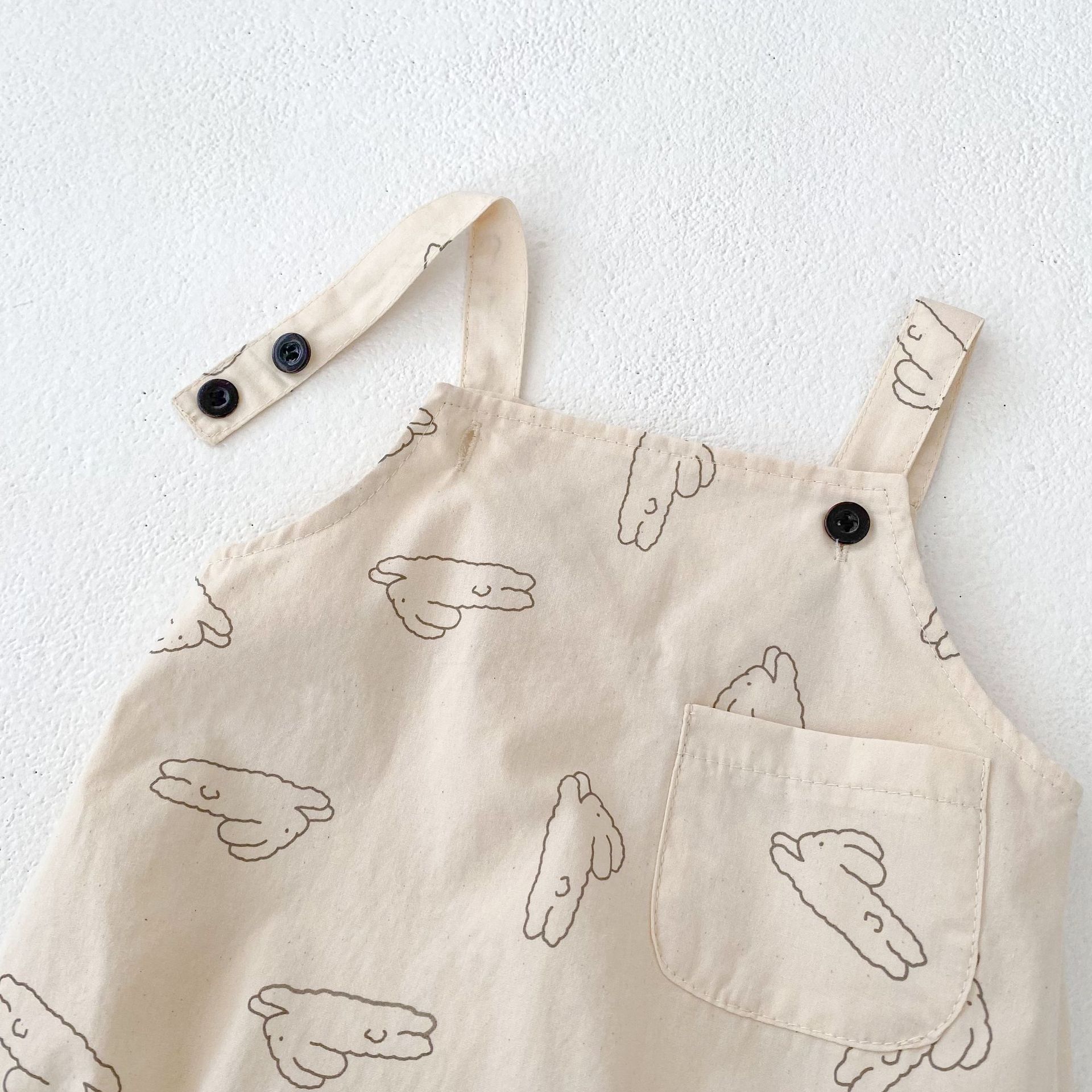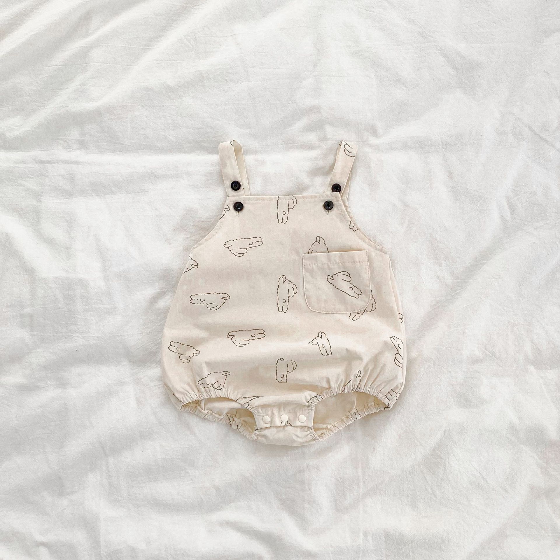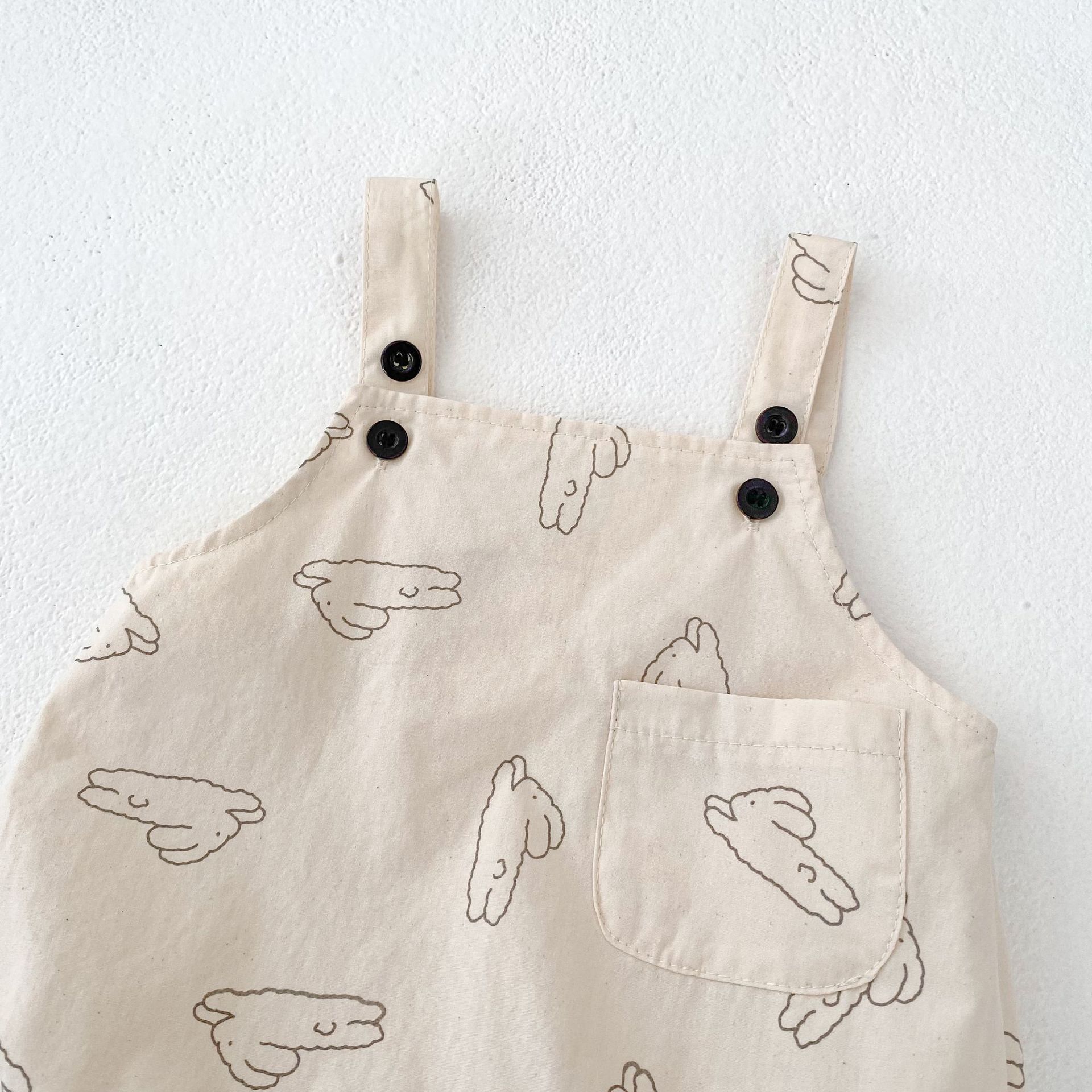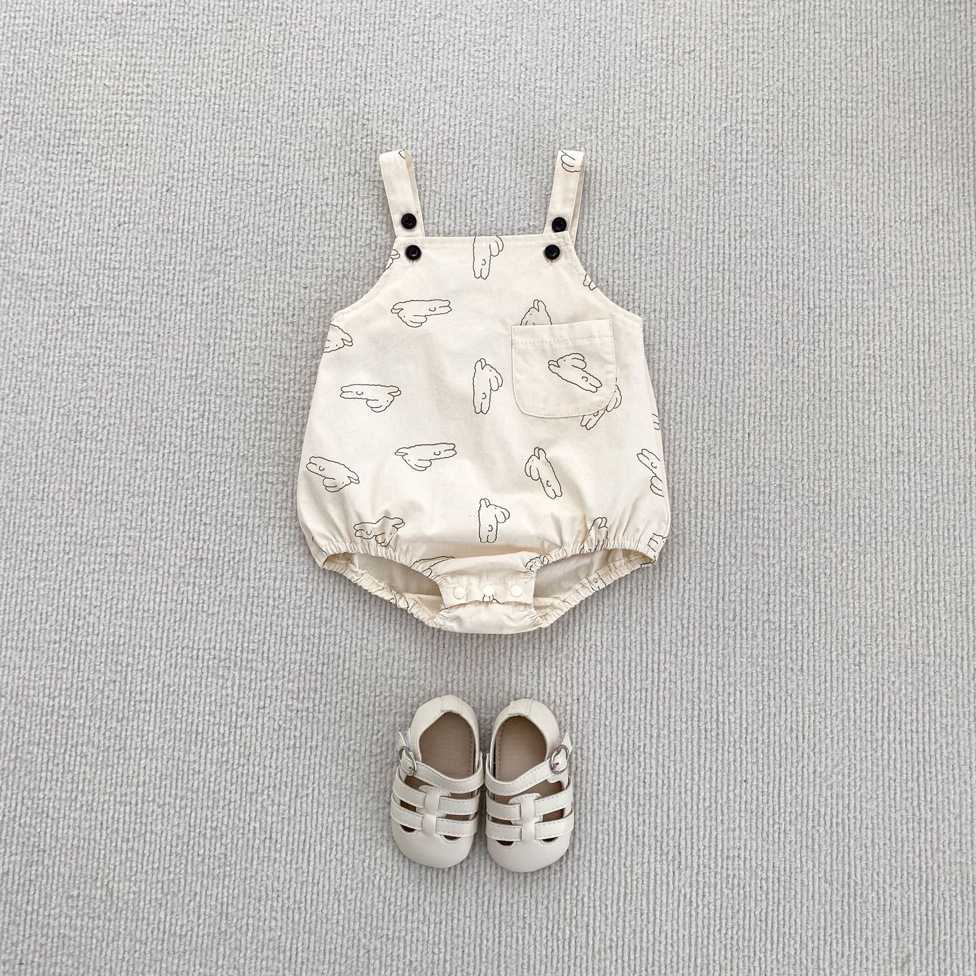 아기 옷 소년 소녀를위한 여름 옷 아기 바지 토끼 인쇄 스트랩 하이 슈퍼 귀여운 가방 방귀 옷 삼각형 등반 세트스토어 가기