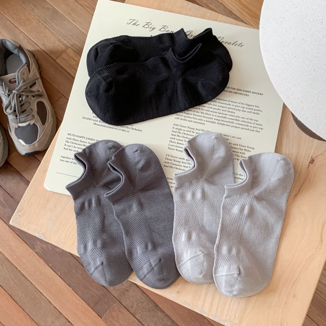 봄과 여름 새로운 솔리드 컬러 보이지 않는 남성 양말 기본 메쉬 통기성 간단한 캐주얼 얇은 짧은 양말 가열 실리콘스토어 가기