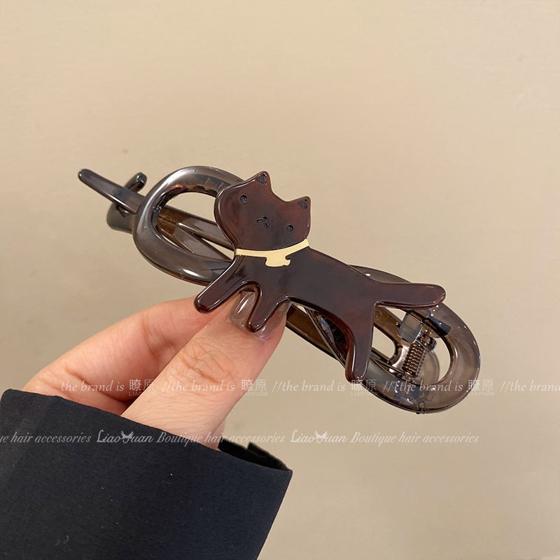 귀여운 고양이 빈티지 헤어 클립 여성의 2025 새로운 백 헤드 헤어핀 우아한 트위스트 클립 헤드웨어