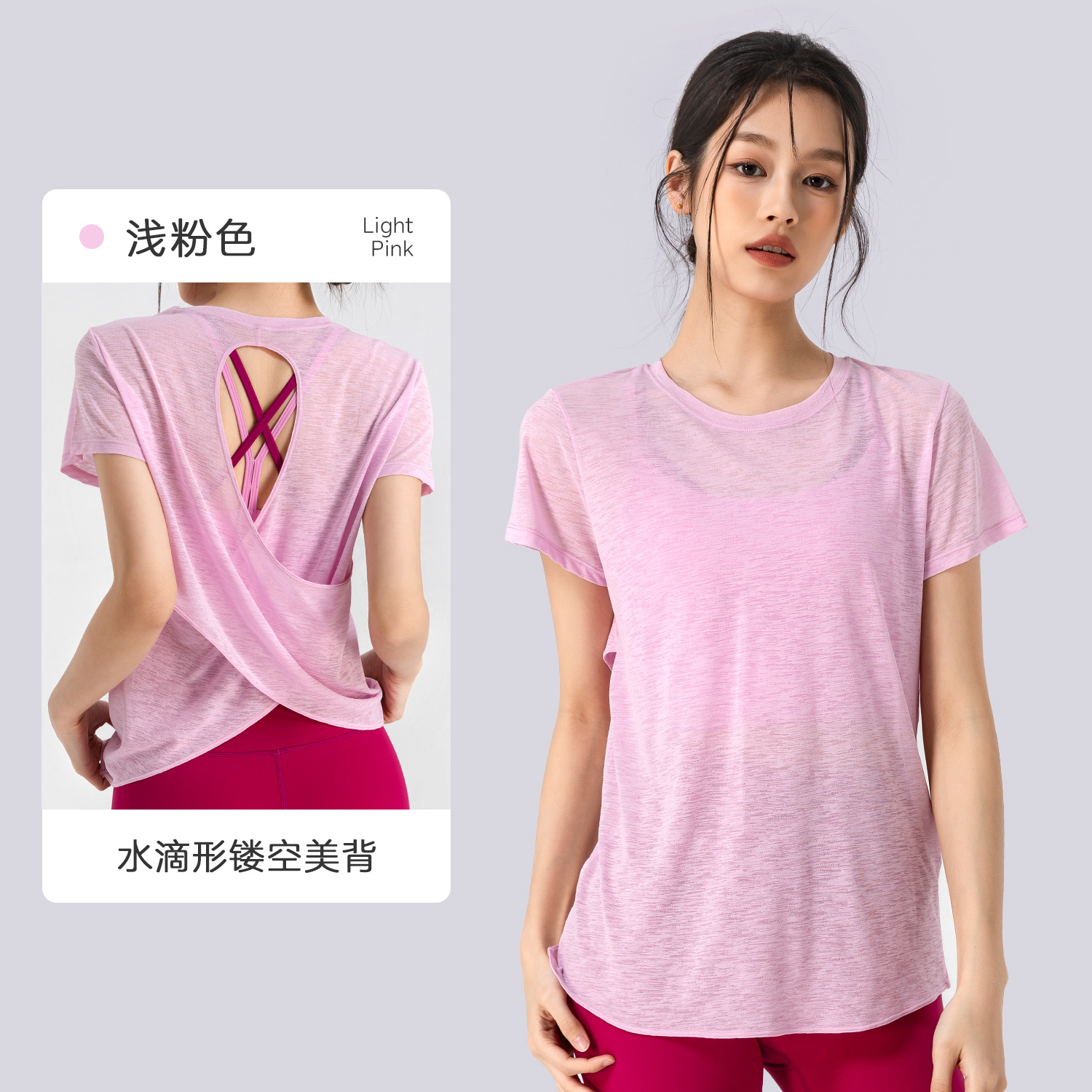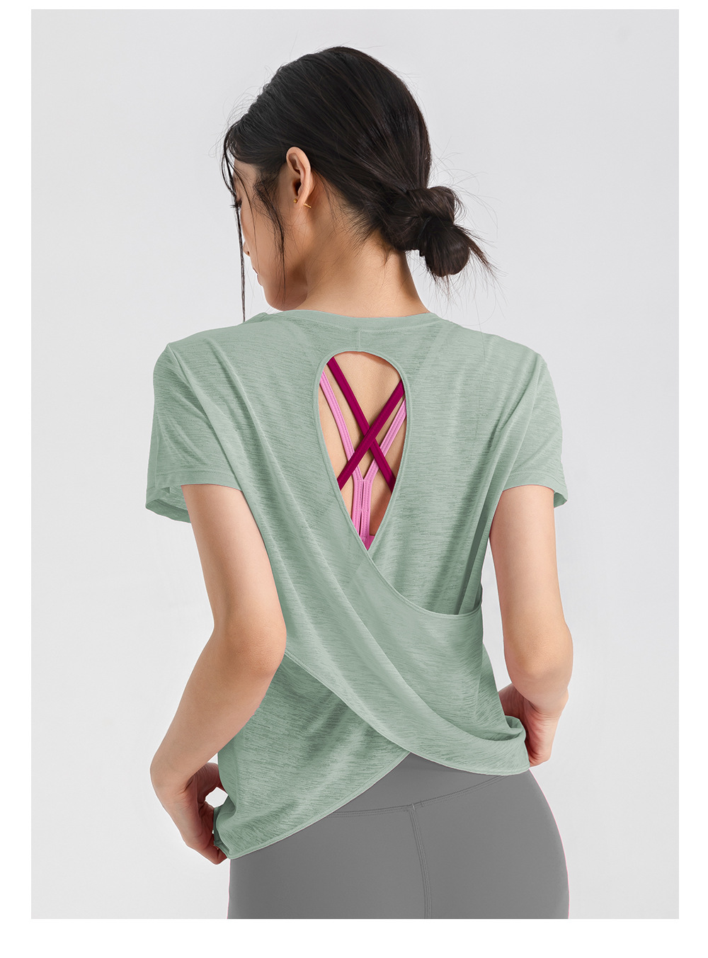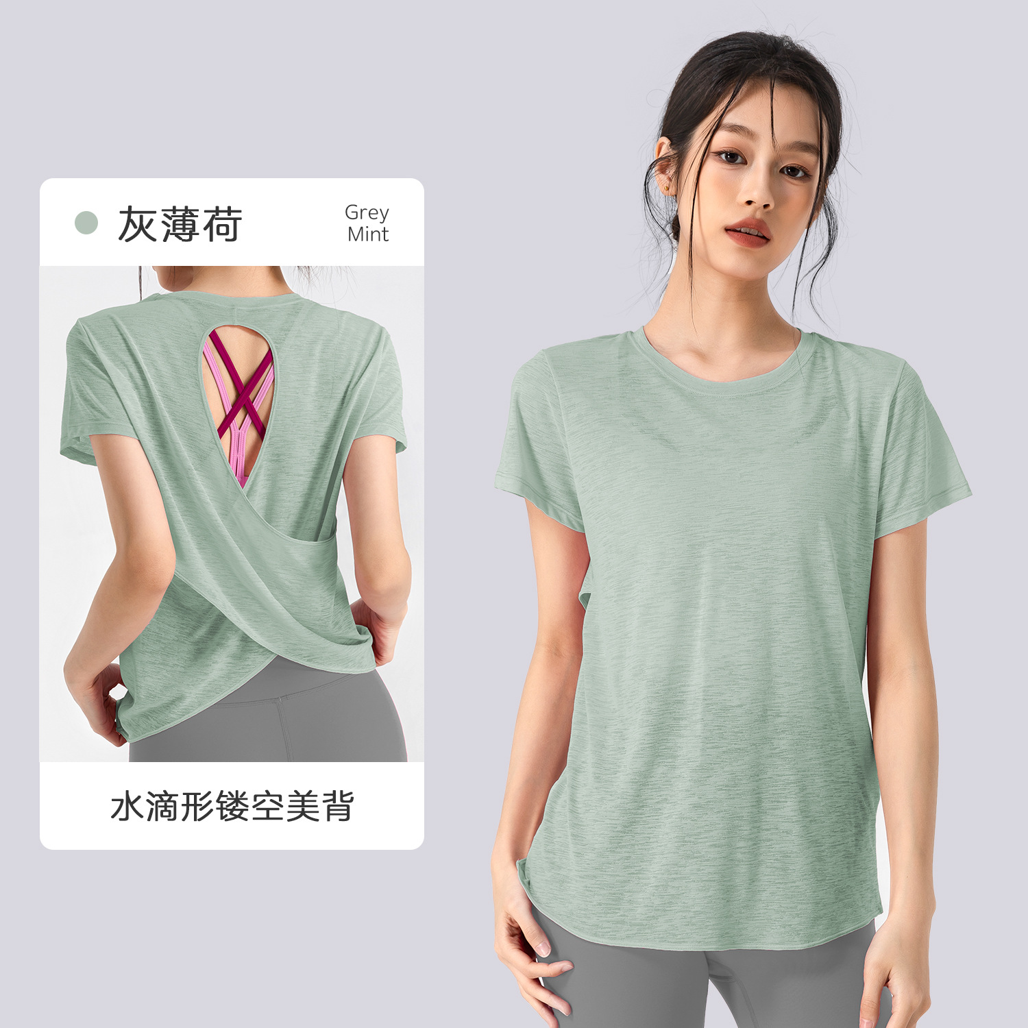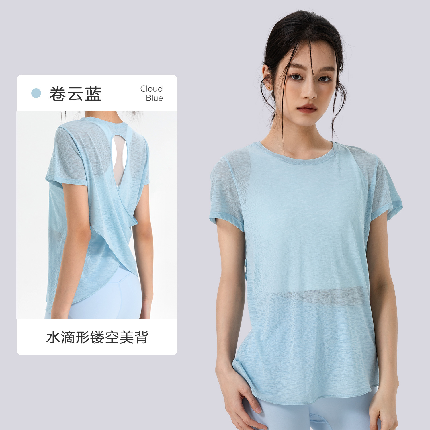 Bamboo Yarn 여름 통기성 요가 커버 업 중공 아름다운 등 스포츠 탑 요가 착용 여성 라운드 넥 피트니스 반팔 여름스토어 가기