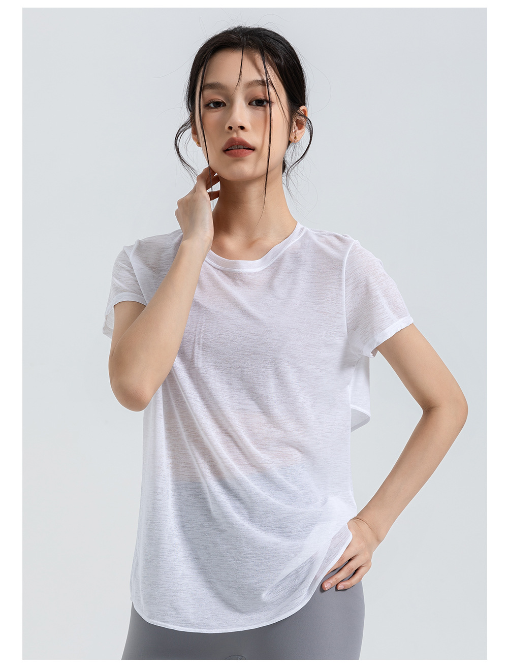 Bamboo Yarn 여름 통기성 요가 커버 업 중공 아름다운 등 스포츠 탑 요가 착용 여성 라운드 넥 피트니스 반팔 여름