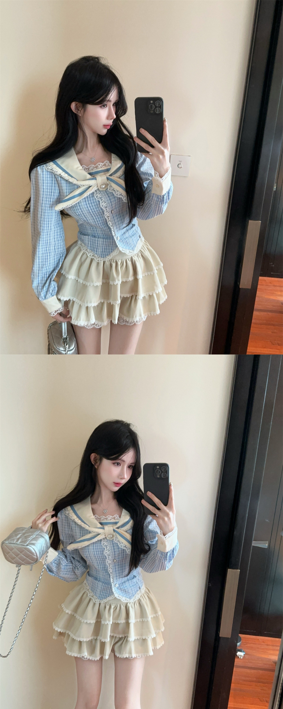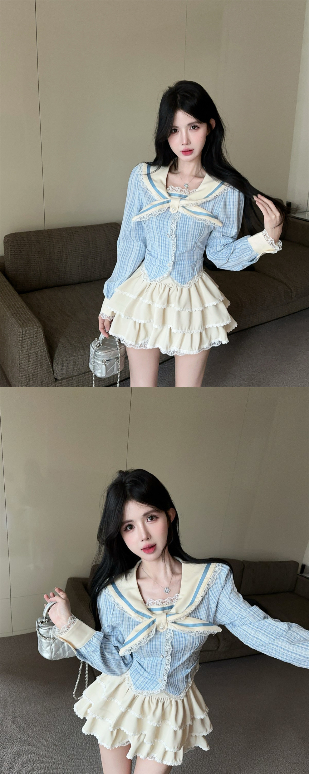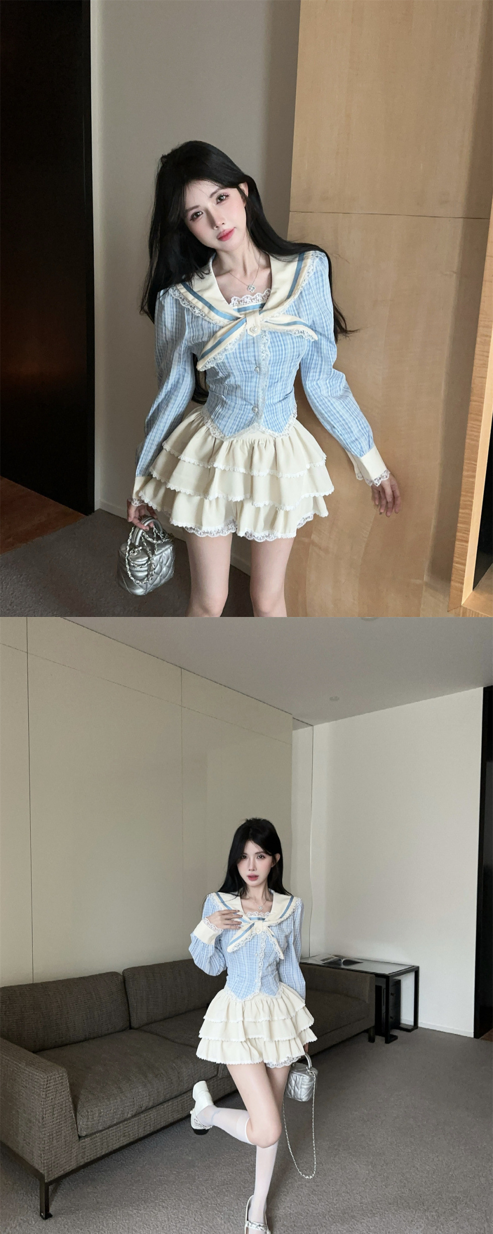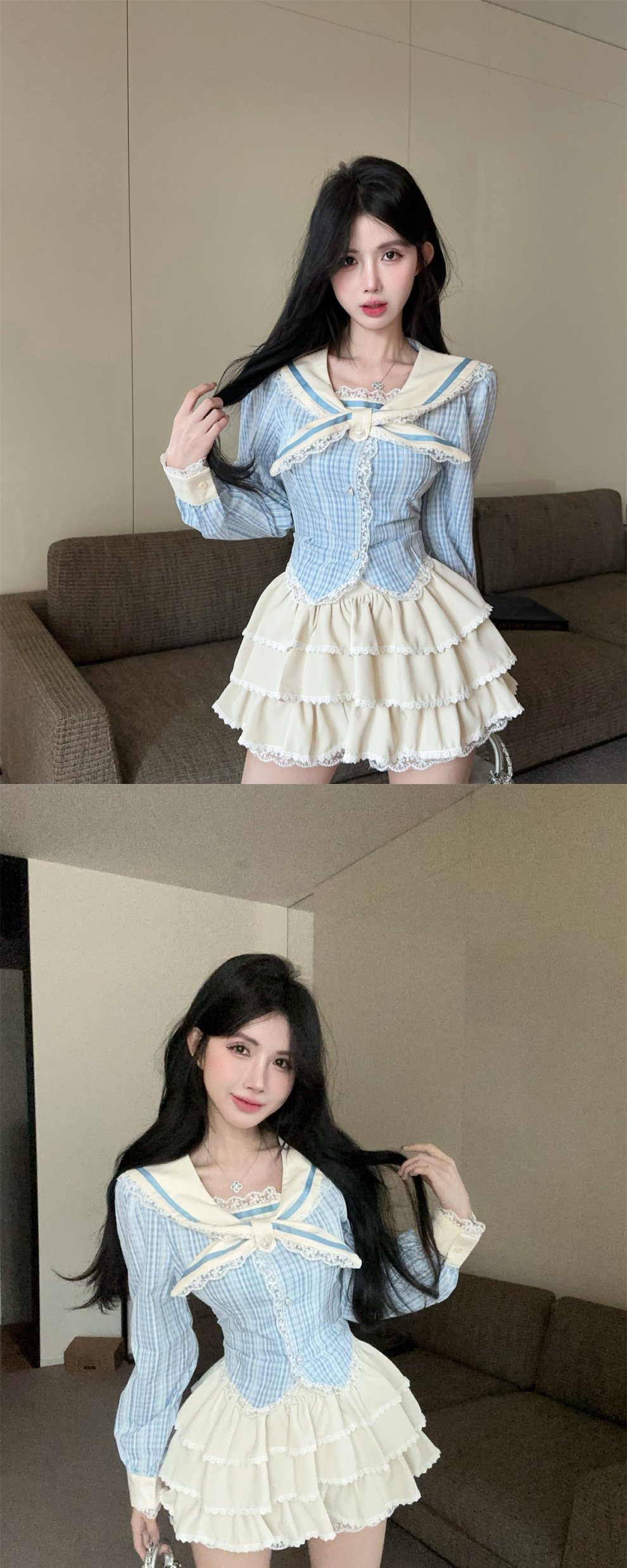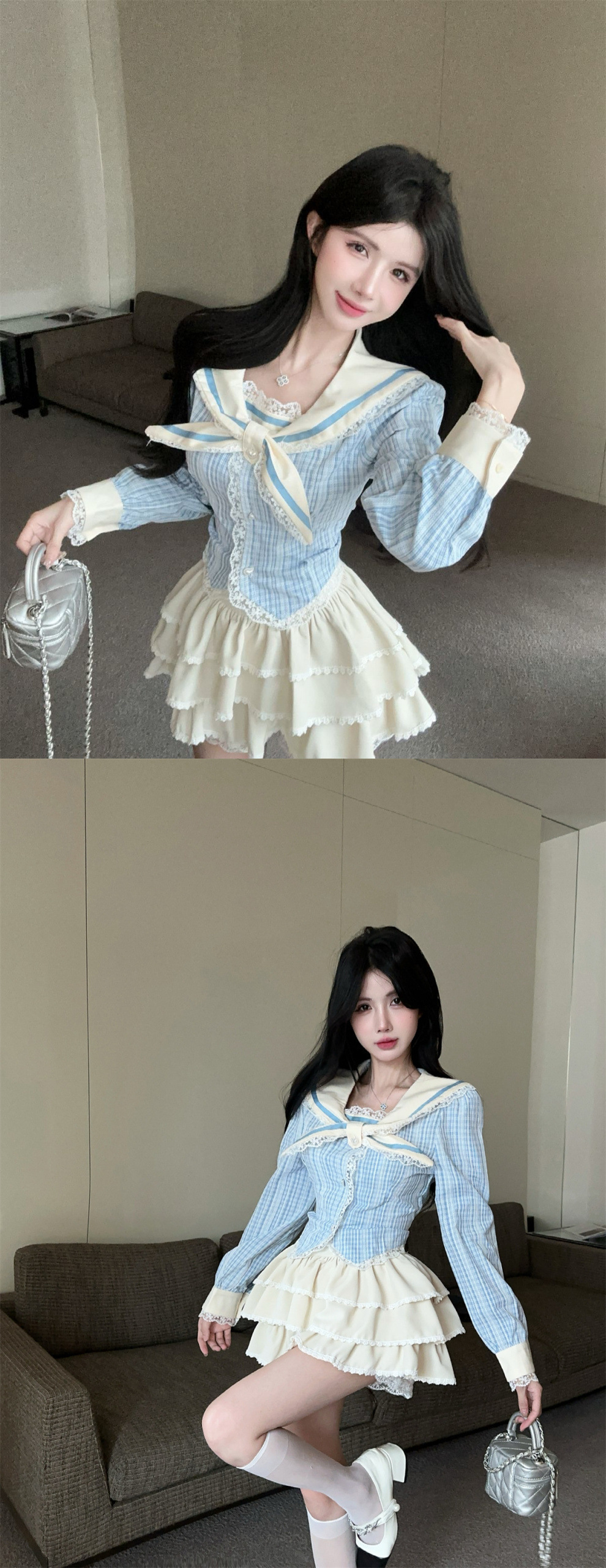 • 파란색 상의 + 스커트