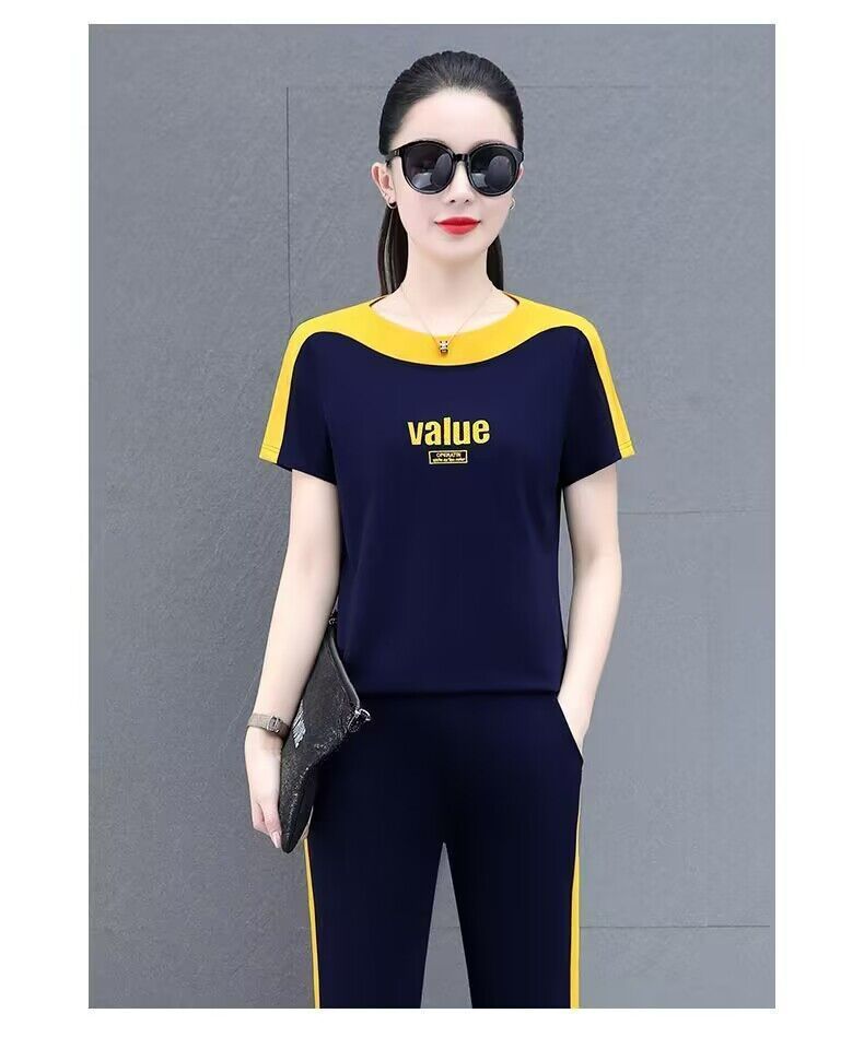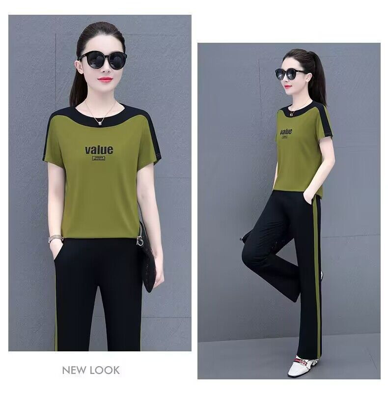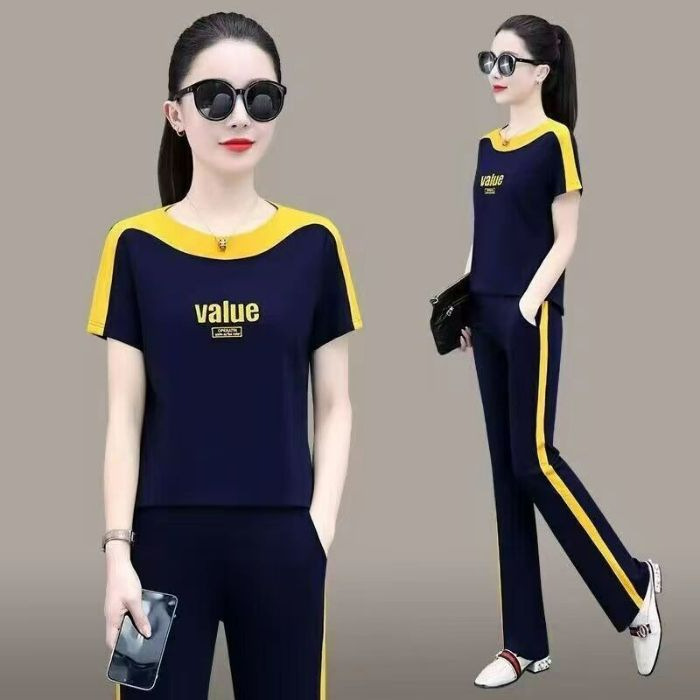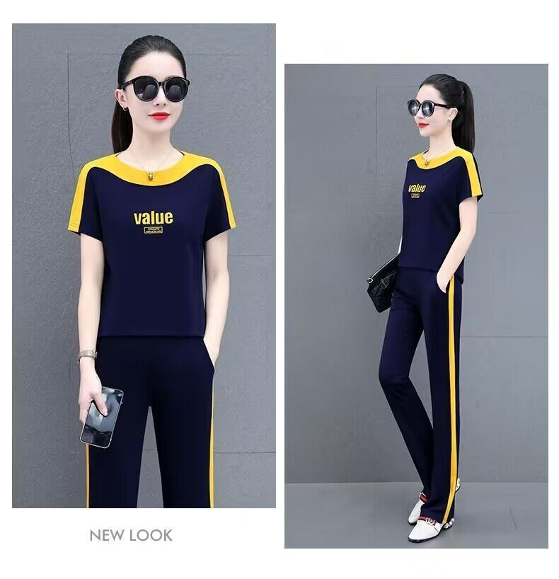 캐주얼 스포츠 세트 여성 2024 봄과 가을 새로운 슬리밍 웨스턴 스타일 간단한 옷깃 스웨트 셔츠 투피스 세트스토어 가기