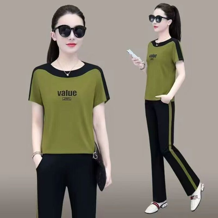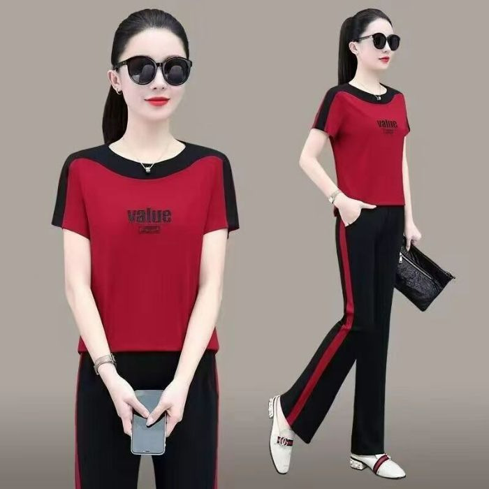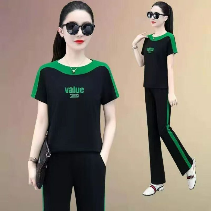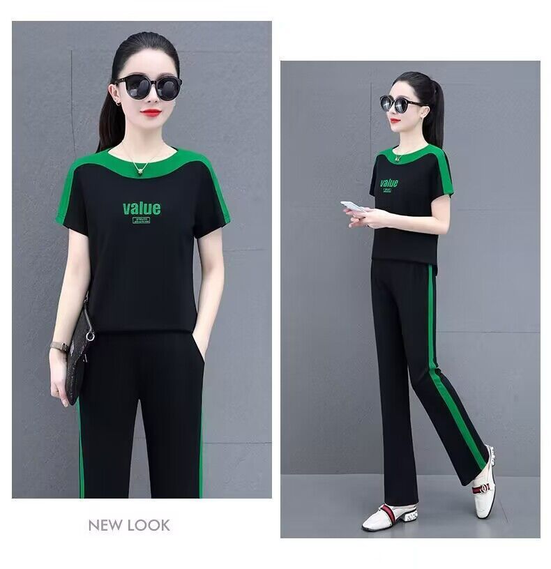 캐주얼 스포츠 세트 여성 2024 봄과 가을 새로운 슬리밍 웨스턴 스타일 간단한 옷깃 스웨트 셔츠 투피스 세트