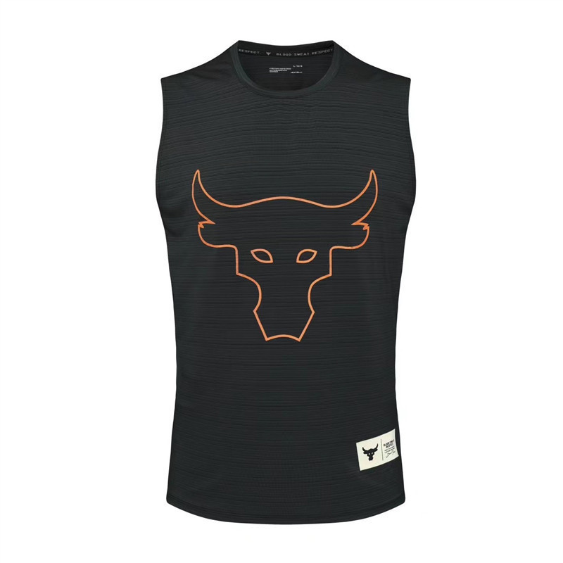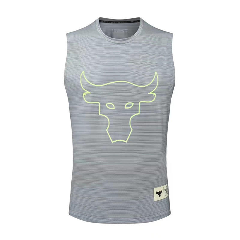 여름 Jushi Johnson Niutou 남자 피트니스 조끼 스포츠 달리기 허리 코트 느슨한 통기성 빠른 건조 소매 티셔츠