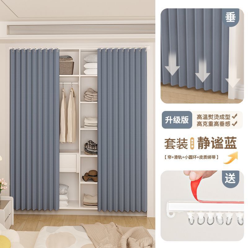 침실 옷장 그늘 문 커튼 슬라이드 레일 망토 방진 커튼 펀치 프리 접이식 캐비닛 책장 파티션 커튼스토어 가기