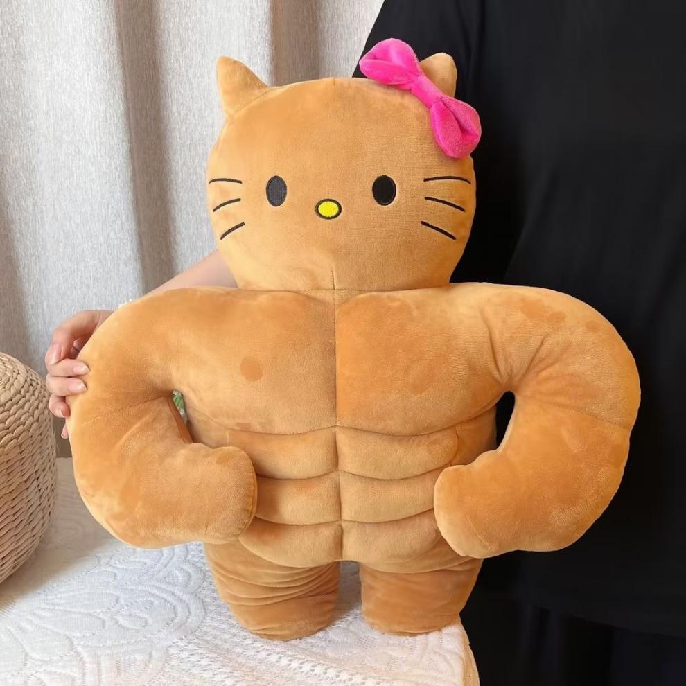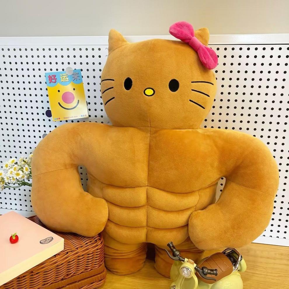 인터넷 인기있는 근육 Kt 고양이 봉제 장난감 인형 재미 근육 모래 조각 헬로 키티 침대 잠자는 베개 선물스토어 가기