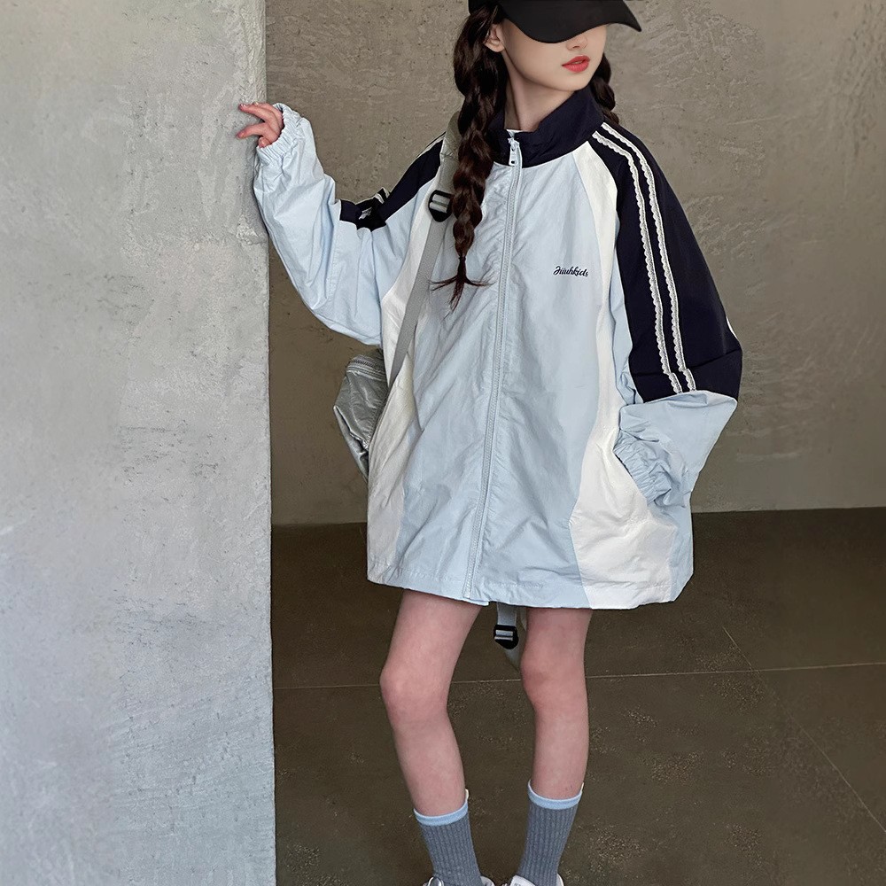 소녀 캐주얼 코트 봄과 가을 2025 새로운 한국 스타일 어린이 서양식 재킷 소녀 봄 지퍼 셔츠 탑