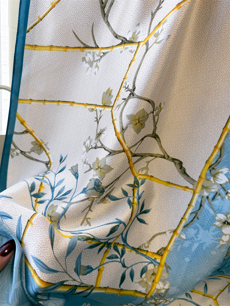봄과 여름 얇은 인쇄 시뮬레이션 실키 브로케이드 선 스크린 골드 바닥 모란 스카프 긴 스카프 목도리 다목적 스카프스토어 가기