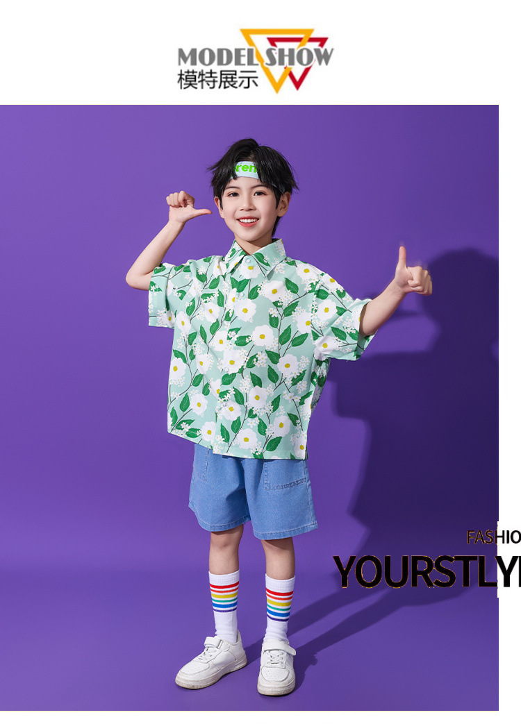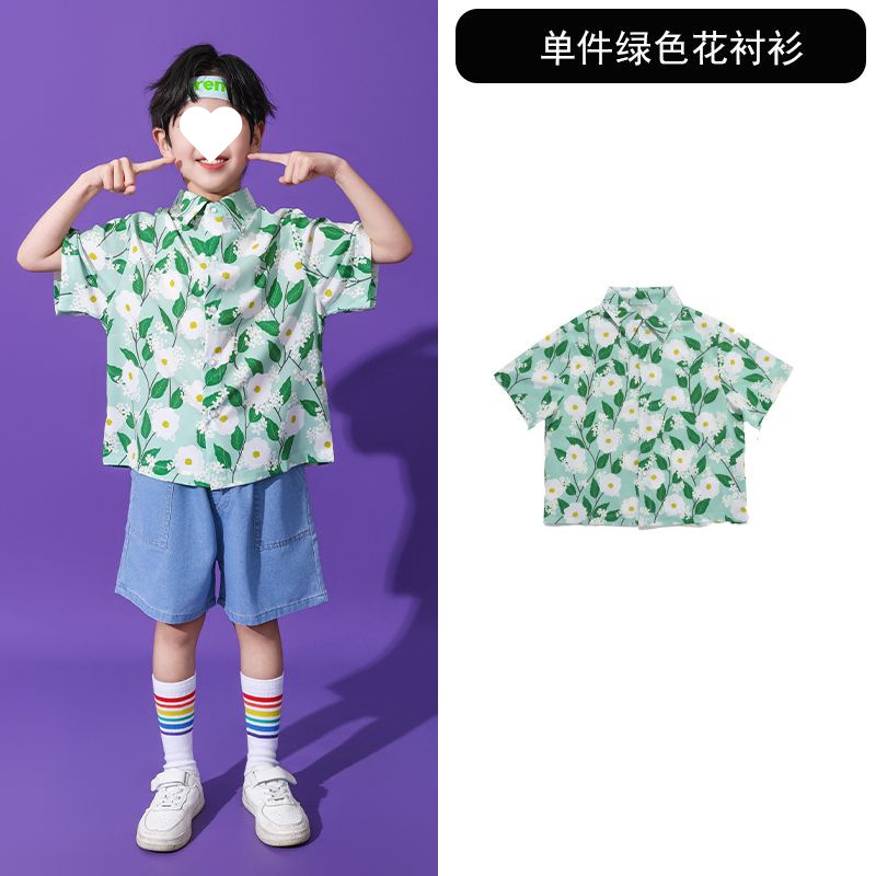 • 그린 트렌디 브랜드 플로럴 셔츠 반팔 [남녀 동일 스타일]